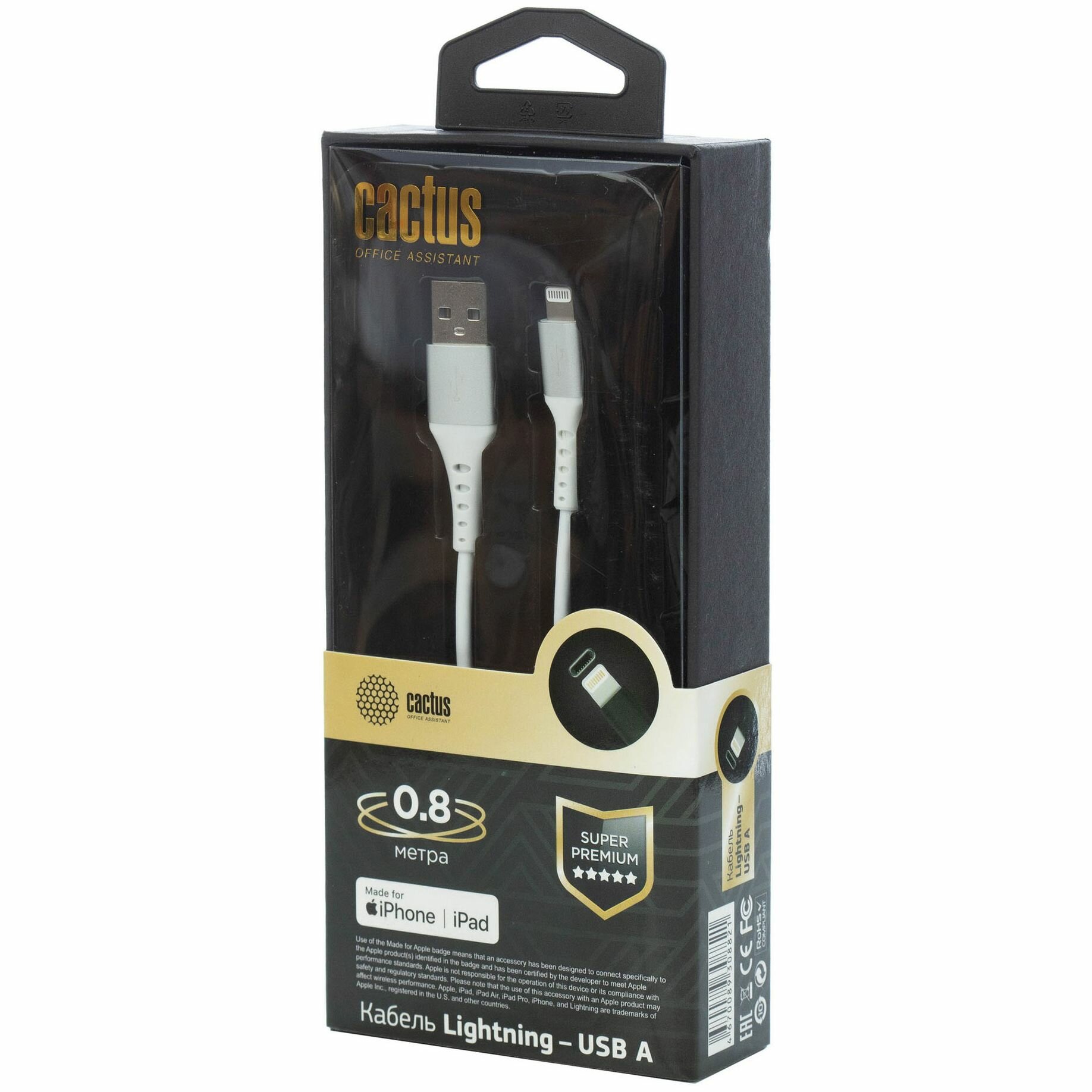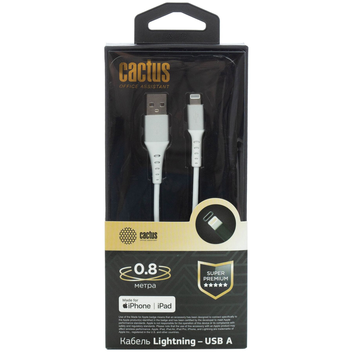Кабель Cactus USB (m)-Lightning (m) 0.8м (cs-lg.usb.a-0.8) CS-LG.USB.A-0.8 USB (m)-Lightning (m)