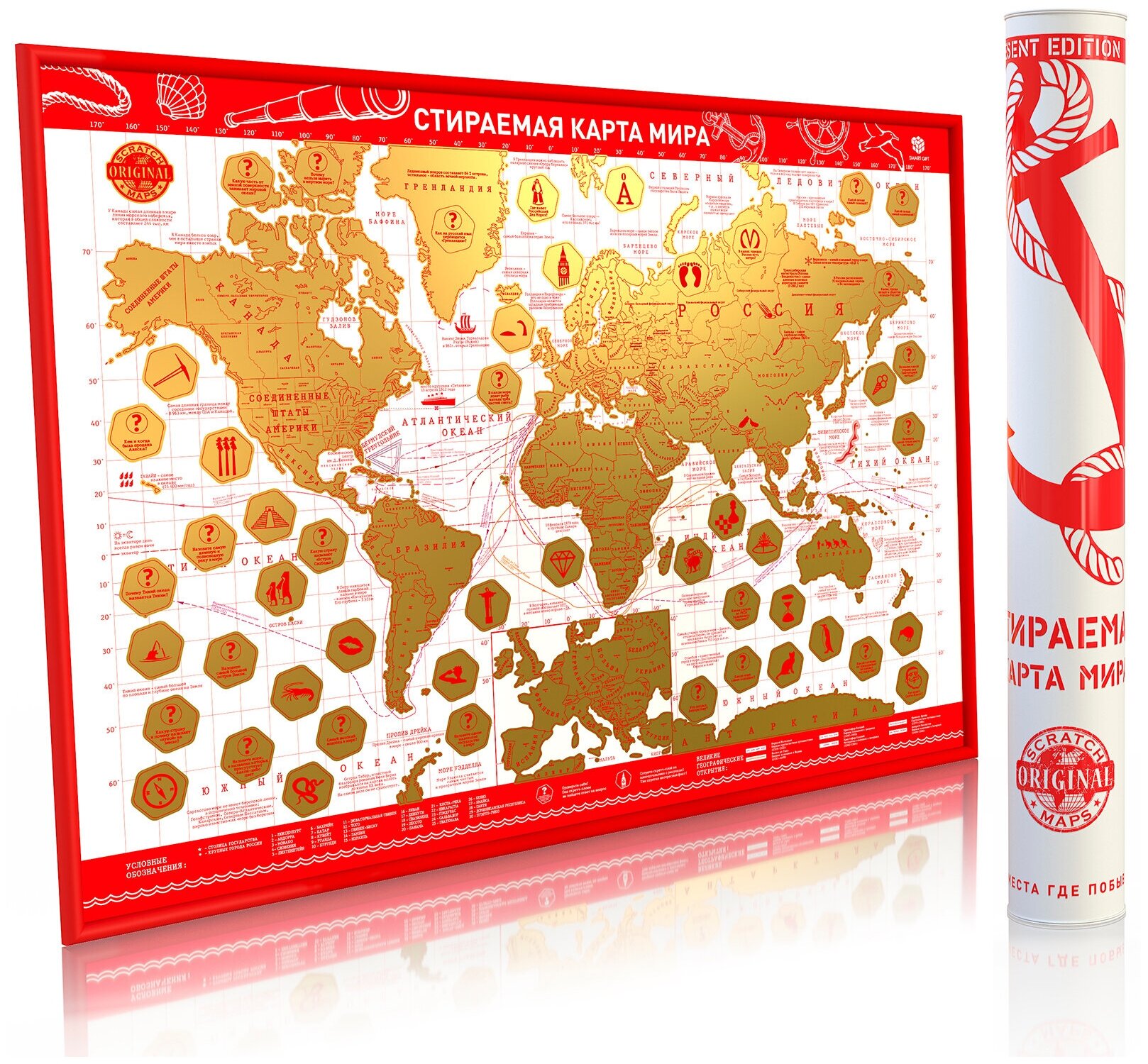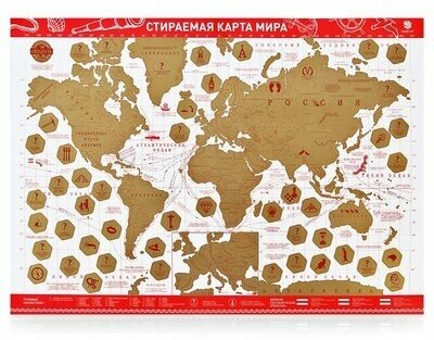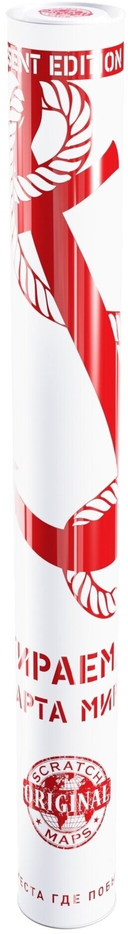 Скретч-карта Мира Present Edition, красная. Познавательно-развивающая Скретч-карта, Викторина. Карта Мира покрытая золотой, стирающейся скретч-краской в стильном, циллиндрическом тубусе, с металлическими крышками, окрашенными в цвет тубуса. Внешний вид, детализация областей России, пути мореплавателей, любопытные факты и более 100 вопросов в виде викторины подарят самые позитивные эмоции получателю Скретч-карты мира. Скретч-карта Мира Present Edition - лучший подарок!
