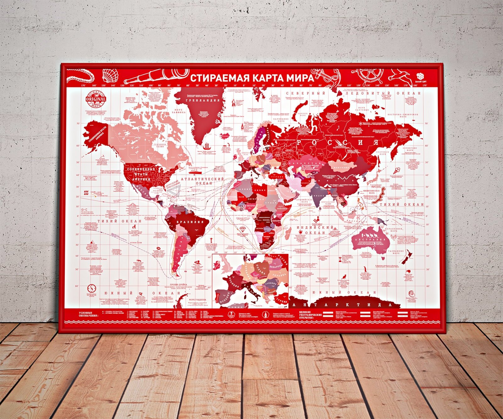 Скретч-карта Мира Present Edition А2 красная 59х42см S-maps.ru 9785906079794