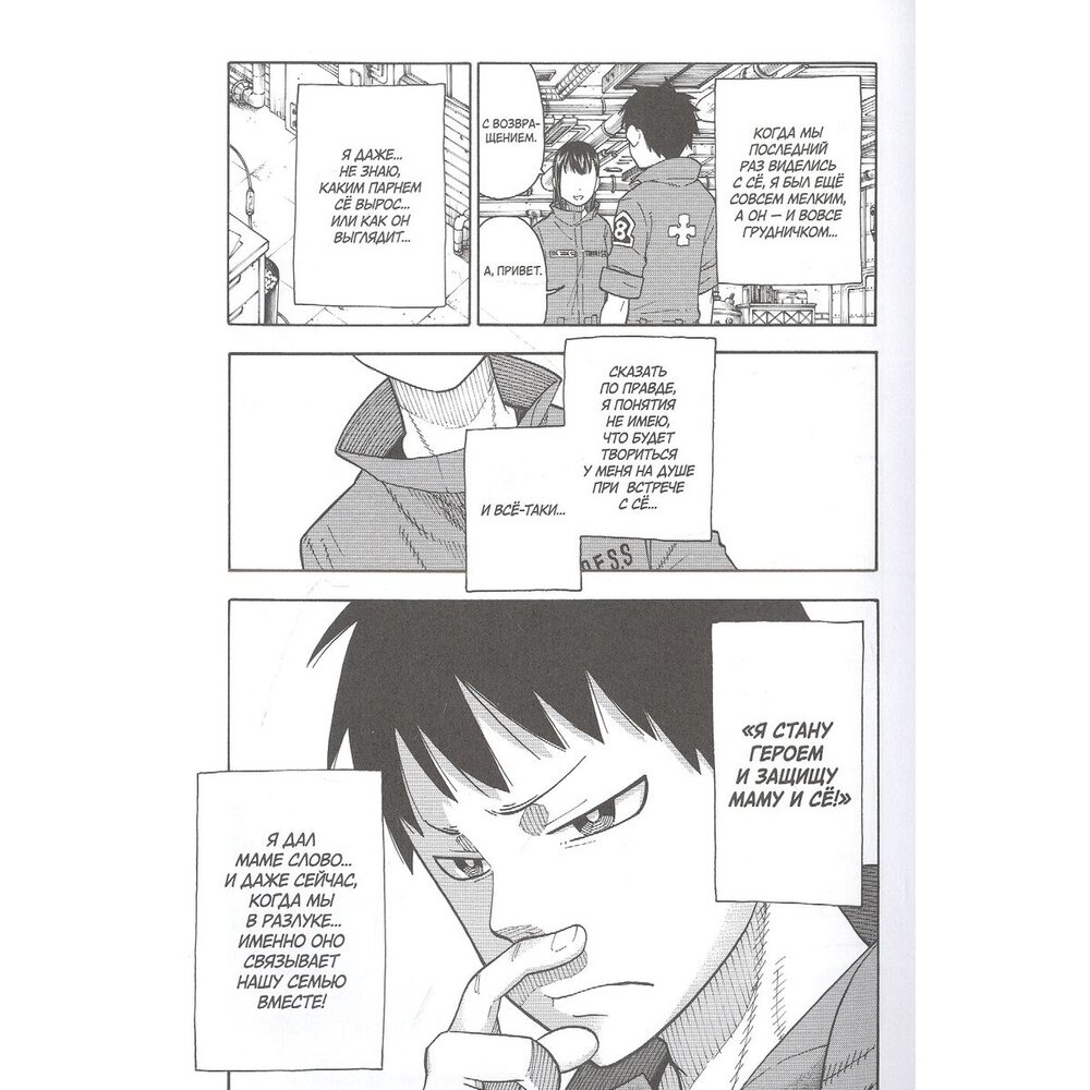 Врагов всё больше, и Асакуса погружается в хаос! Что делать восьмой бригаде, когда район объят пламенем, а Белые Капюшоны переходят в наступление?! Как теперь поступит седьмая бригада?! Какое решение найдёт Синра с друзьями?!
