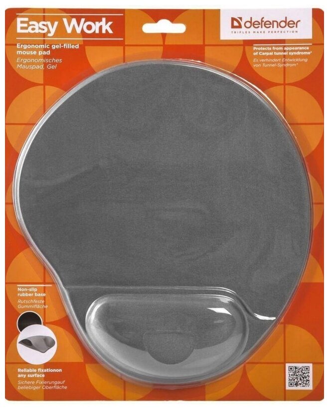Коврик для мыши Defender EASY WORK снабжен мягкой гелевой подставкой, уменьшающей нагрузку на запястье, способствующей расслаблению мышц и предотвращающей возникновение тоннельного синдрома. Качественное покрытие из лайкры позволяет получить оптимальное соотношение скольжения и сцепления, обеспечивая точное наведение курсора на цель. Полиуретановая подкладка помогает прочно зафиксировать коврик на столе, не допуская его случайного смещения.