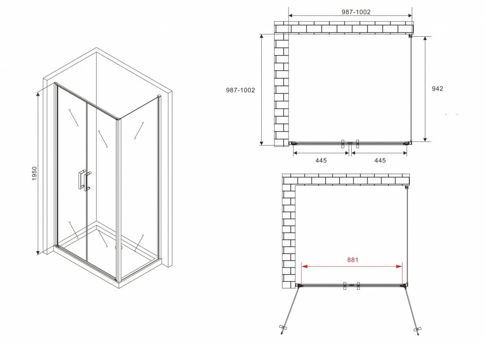 - Размеры (ШхВхД): 1002х1950х1002 мм.