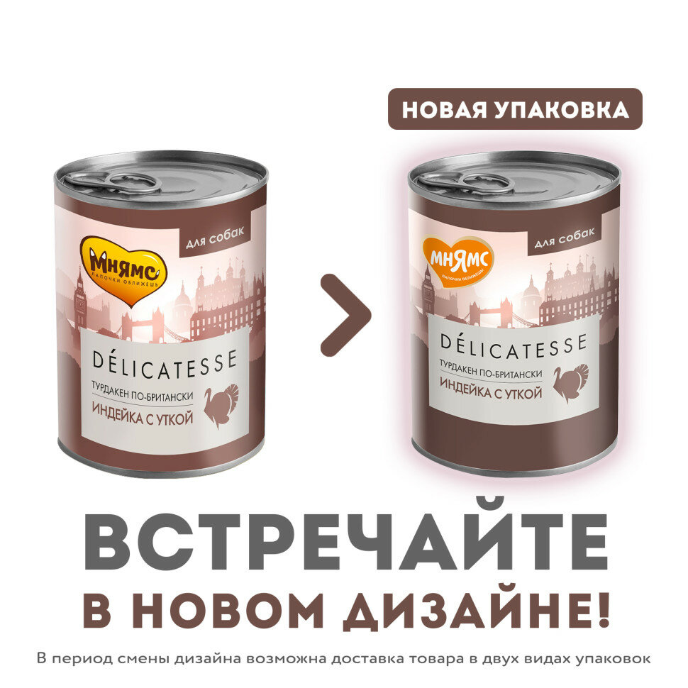 Мнямс "Турдакен по-британски" консервы для собак всех пород (Индейка и утка 400 г.)
