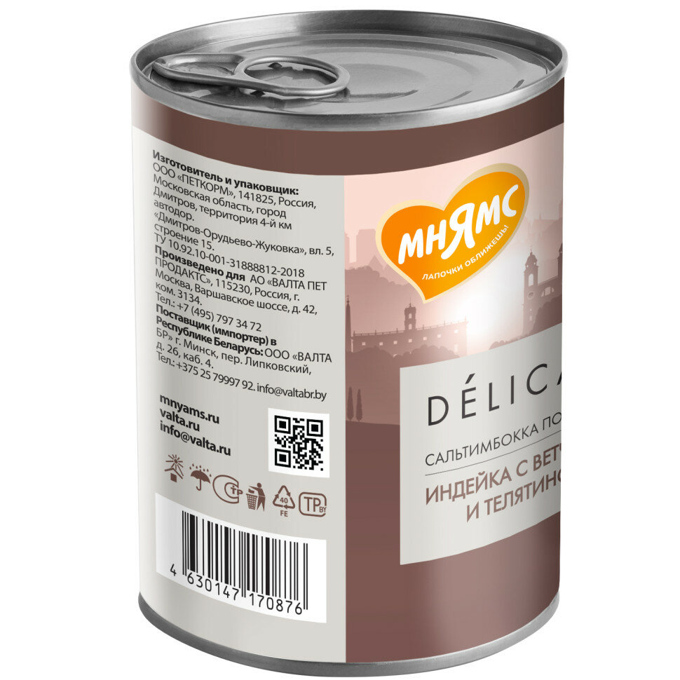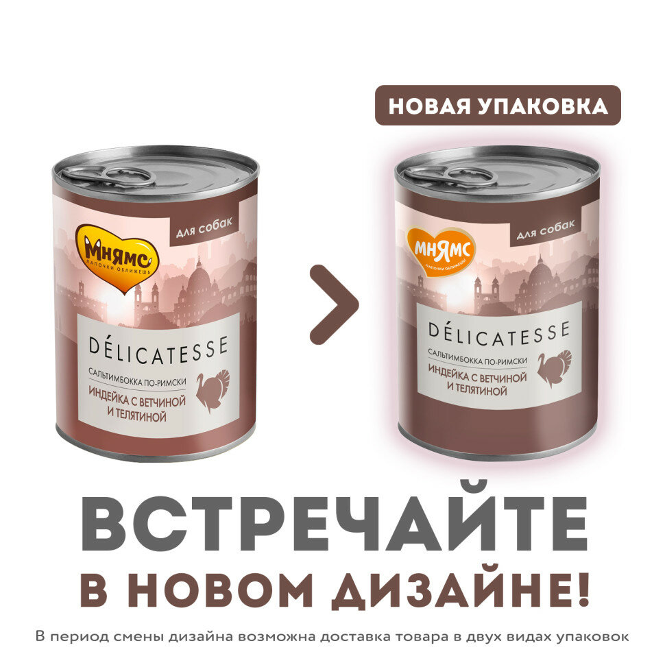 Мнямс "Сальтимбокка по-римски" консервы для собак всех пород (Индейка с ветчиной и телятиной 400 г.)