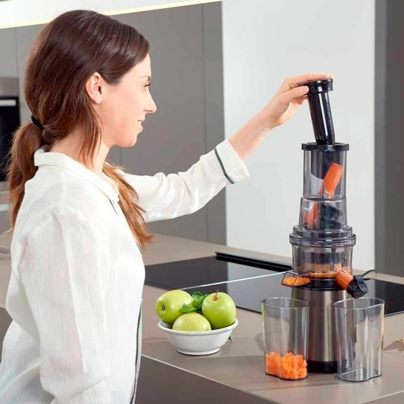 | Дополнительно * | Загрузочный диаметр 80 мм, Толкатель продуктов для большей практичности, Функция реверса, Противокапельная система, Фильтр из нержавеющей стали, Прорезиненные ножки |