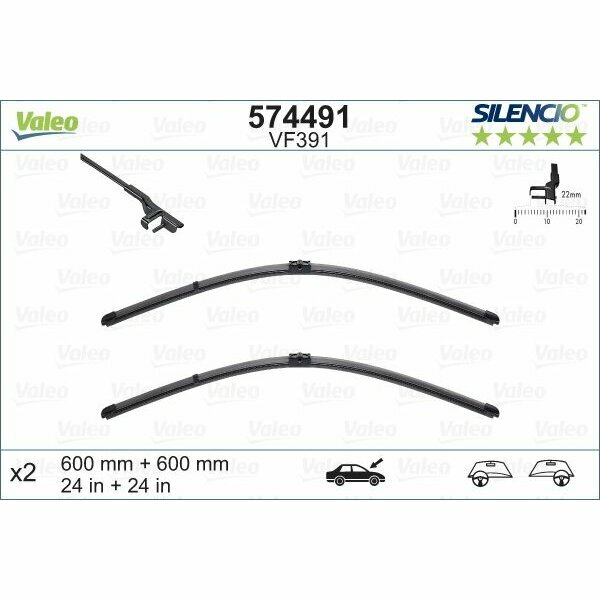 Щетки стеклоочистителя комплект Valeo 600/600мм бескаркасная 574491