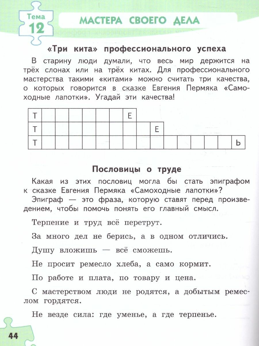 Рабочая тетрадь является частью учебно-методического комплекта, который обеспечивает занятия во 2 классе общеобразовательных организаций по курсу профессионального самоопределения младших школьников «Знакомство с миром профессий». Издание содержит развивающие, творческие и диагностические задания, которые дети выполняют в ходе занятий вместе с классом под руководством учителя. Сценарии занятий, а также теоретическое обоснование, цели и задачи курса представлены в методических рекомендациях к рабочей тетради. Соответствует Федеральному государственному образовательному стандарту начального общего образования.