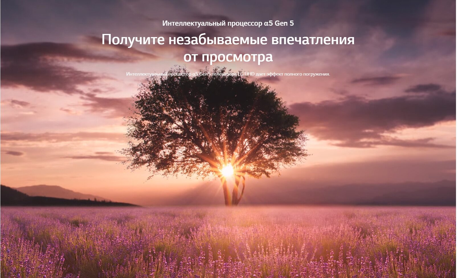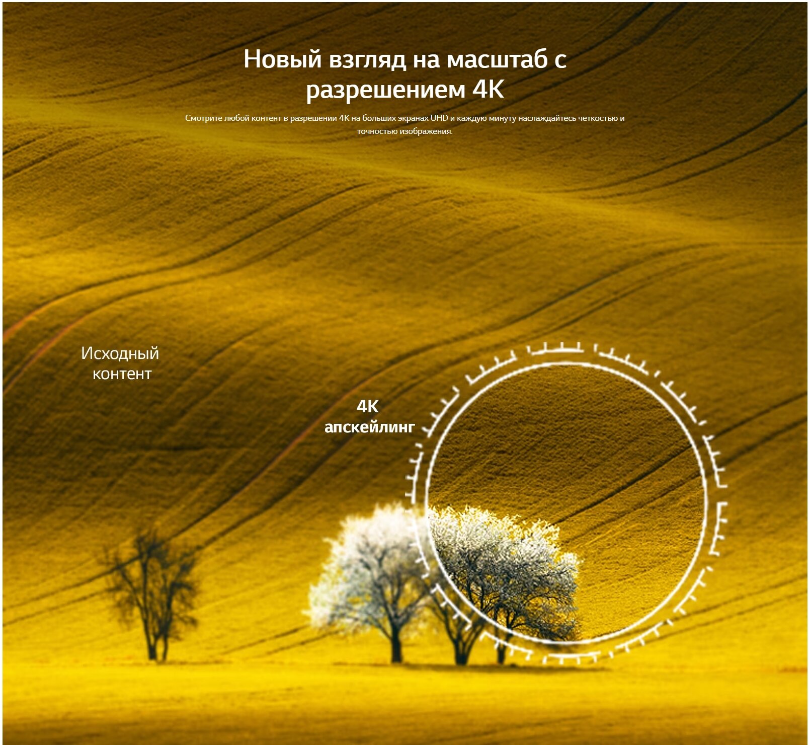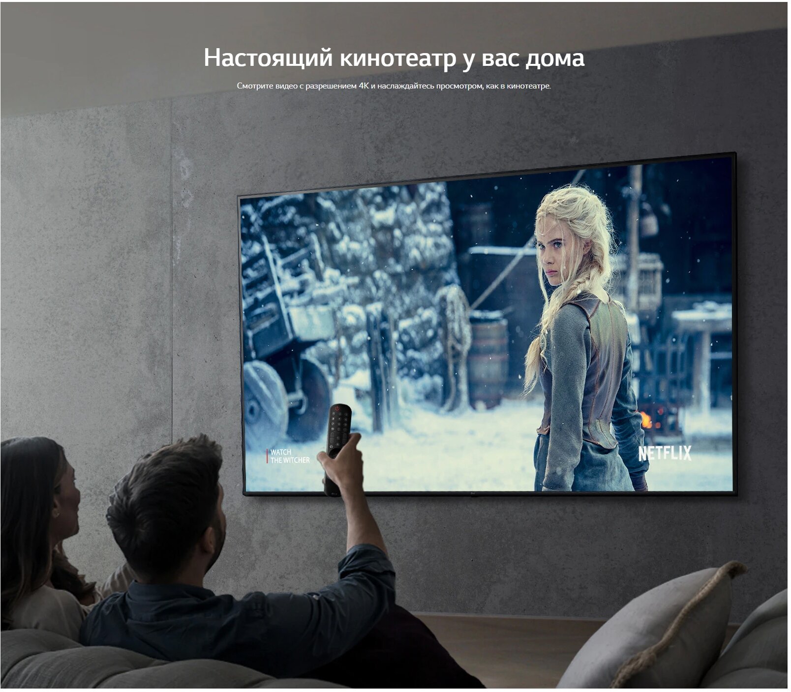 Телевизоры LG UHD дарят вам новые впечатления от просмотра. Наслаждайтесь яркими цветами и невероятной детализацией телевизоров Real 4K. Телевизор LG UHD теперь имеет более тонкий дизайн и тонкую рамку, которые гармонично сочетаются с вашим интерьером. Интеллектуальный процессор ?5 Gen5 телевизора LG UHD дает эффект полного погружения. Смотрите любой контент в разрешении 4K на больших экранах UHD и каждую минуту наслаждайтесь четкостью и точностью изображения. Интеллектуальная технология ThinQ AI позволяет эффективно использовать весь функционал телевизора LG UHD: от голосового управления до персонализации контента.