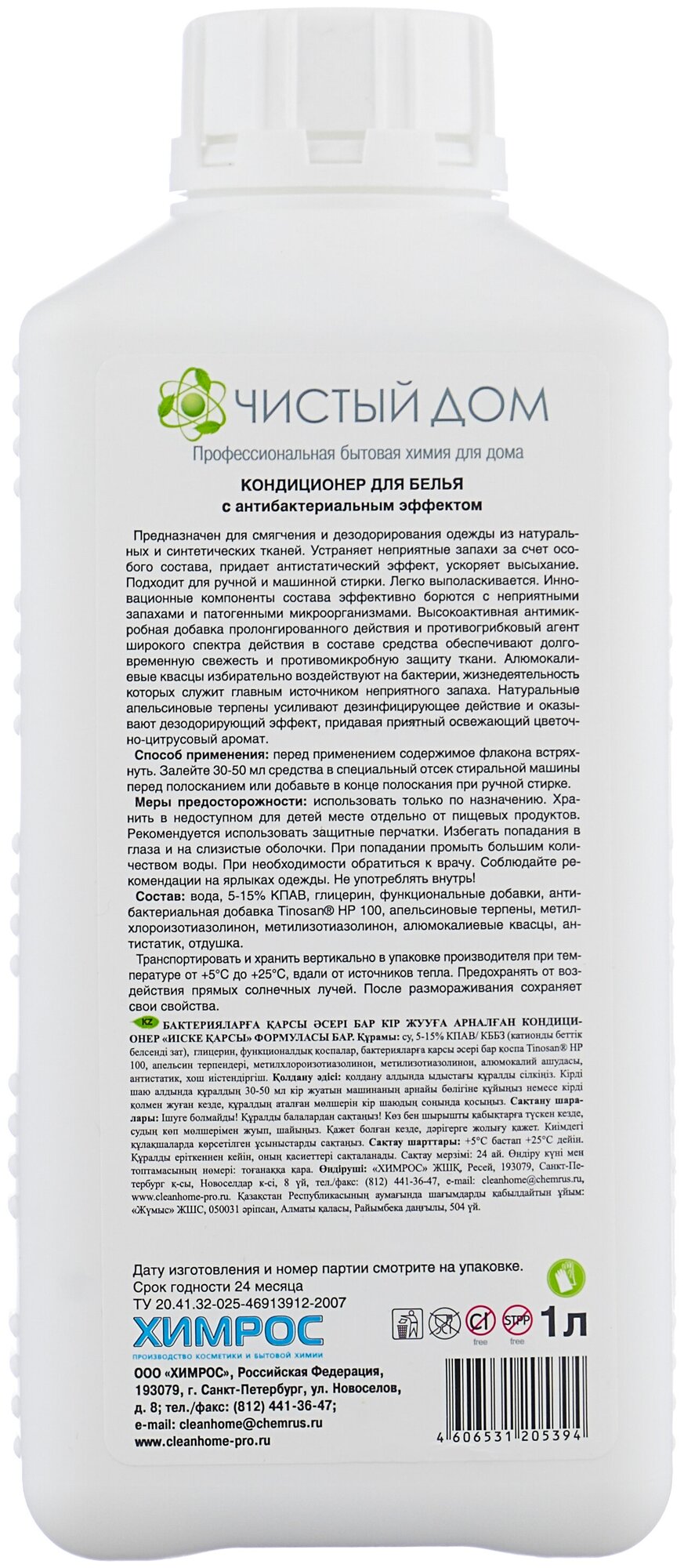 Универсальный кондиционер для белья. Предназначен для смягчения и уменьшения износа тканей из хлопка, шерсти и синтетических материалов. Продлевает срок службы вещей, сохраняет форму. Сохраняет яркость красок. Увеличивает устойчивость к загрязнениям тканей. Clean Formula ДНК Разглаживающий - Композиция катионных ПАВ, которая обладает смягчающим и антистатическим воздействием, благодаря чему складки на ткани становятся менее выраженными, поэтому вы можете либо вообще не гладить, либо значительно сократить затрачиваемое время. Залейте 25-45 мл средства в стиральную машину перед полосканием или добавьте в конце полоскания при ручной стирке.