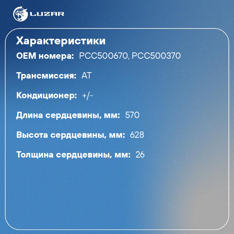 | Сопутствующий товар | Радиаторы кондиционера (конденсеры):LRAC 1011 |