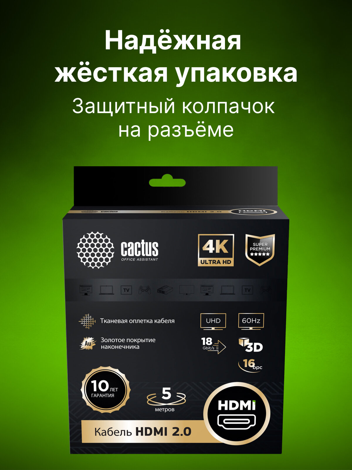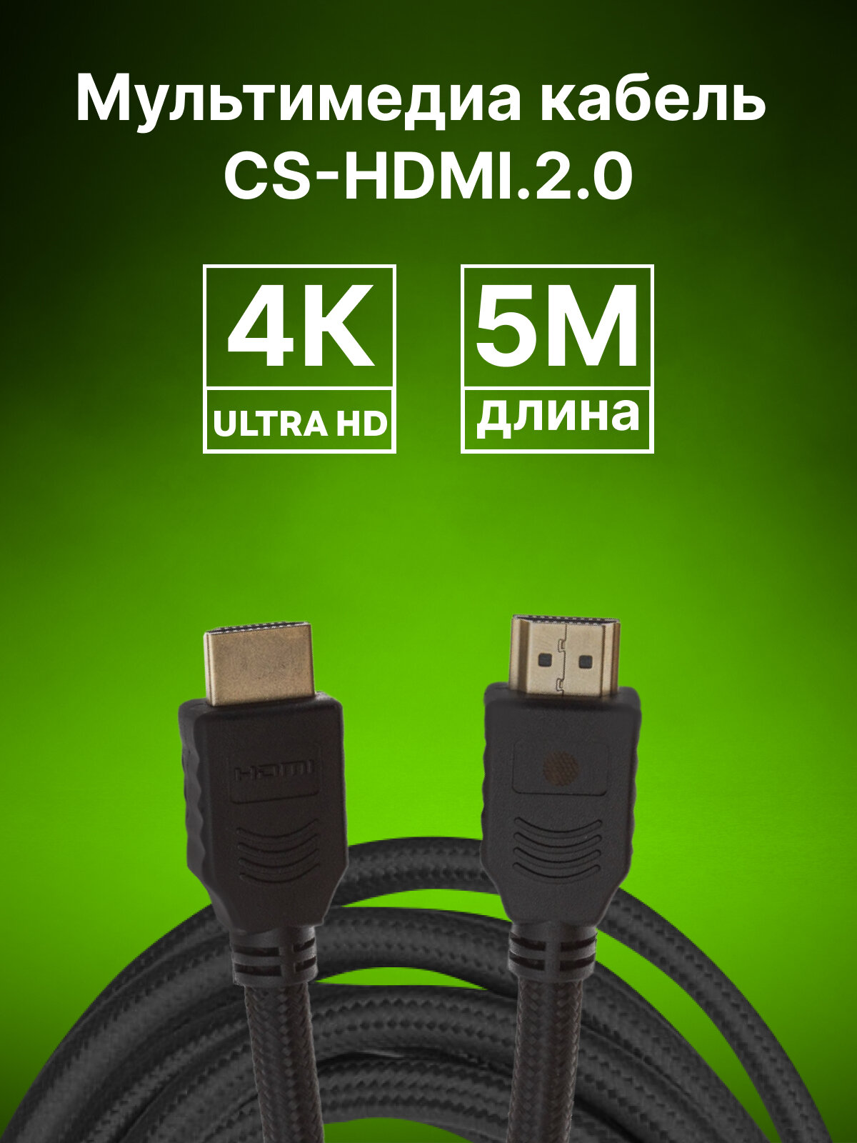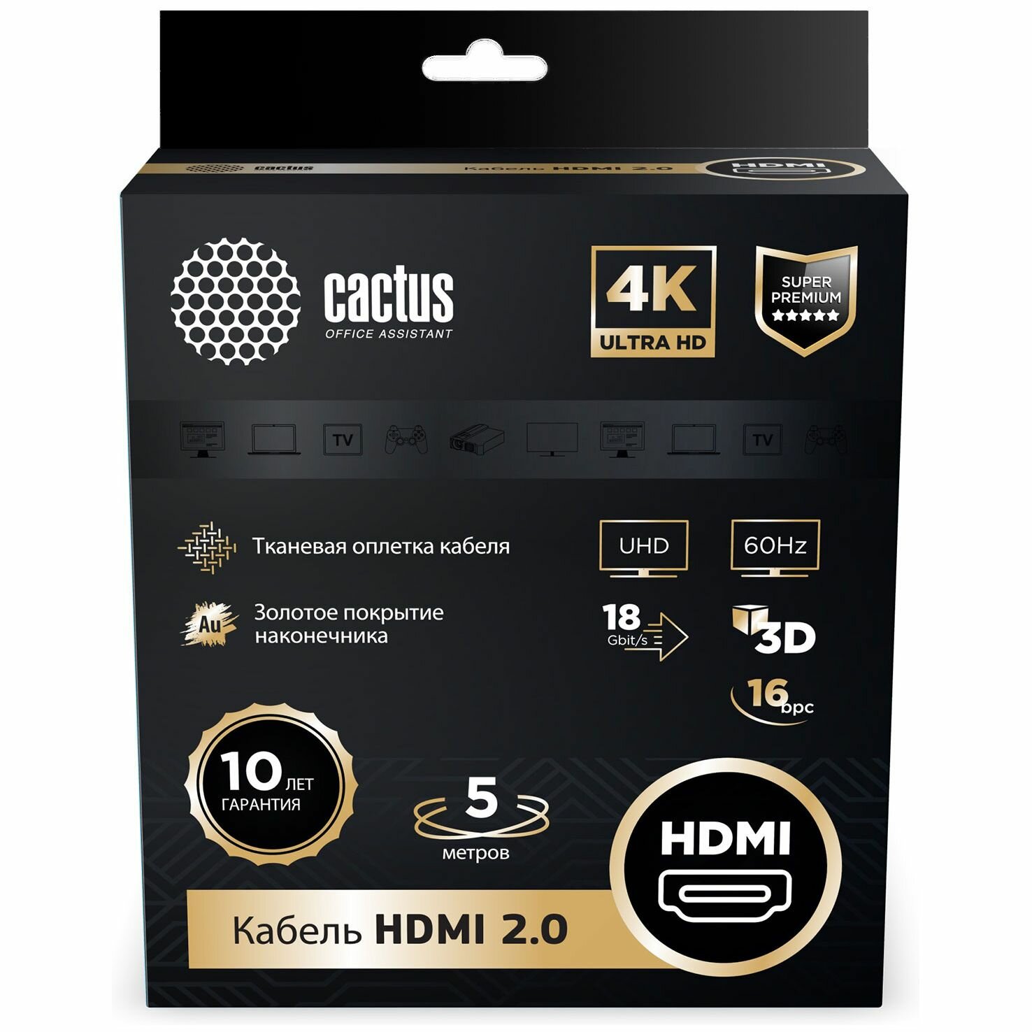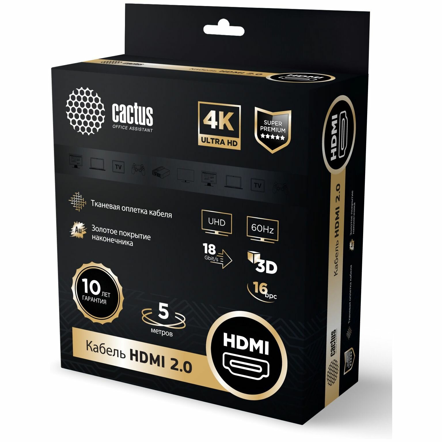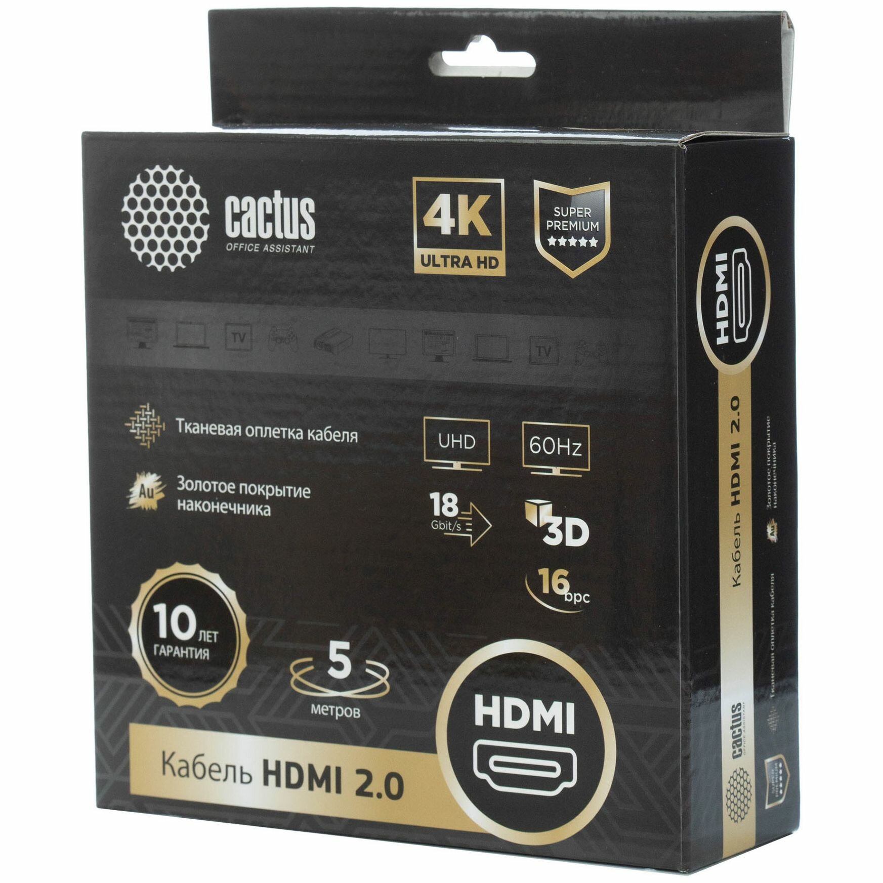 Кабель аудио-видео Cactus CS-HDMI.2-5 HDMI (m)/HDMI (m) 5м. Позолоченные контакты черный