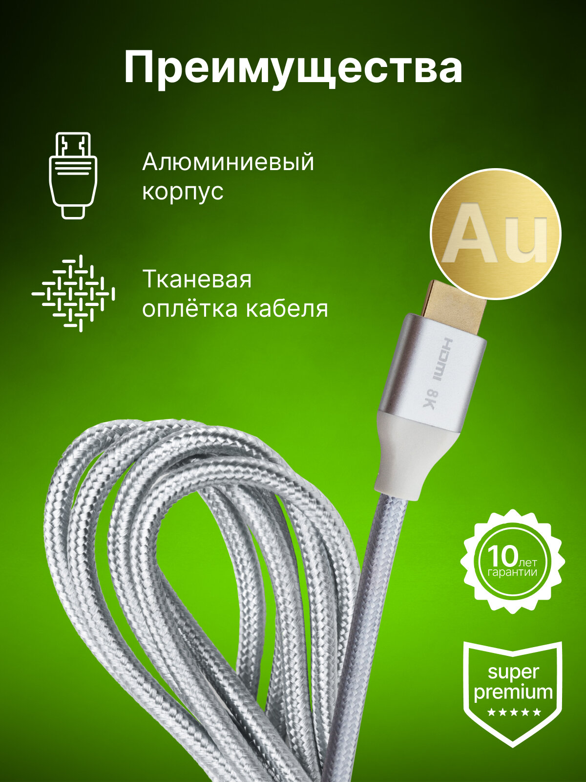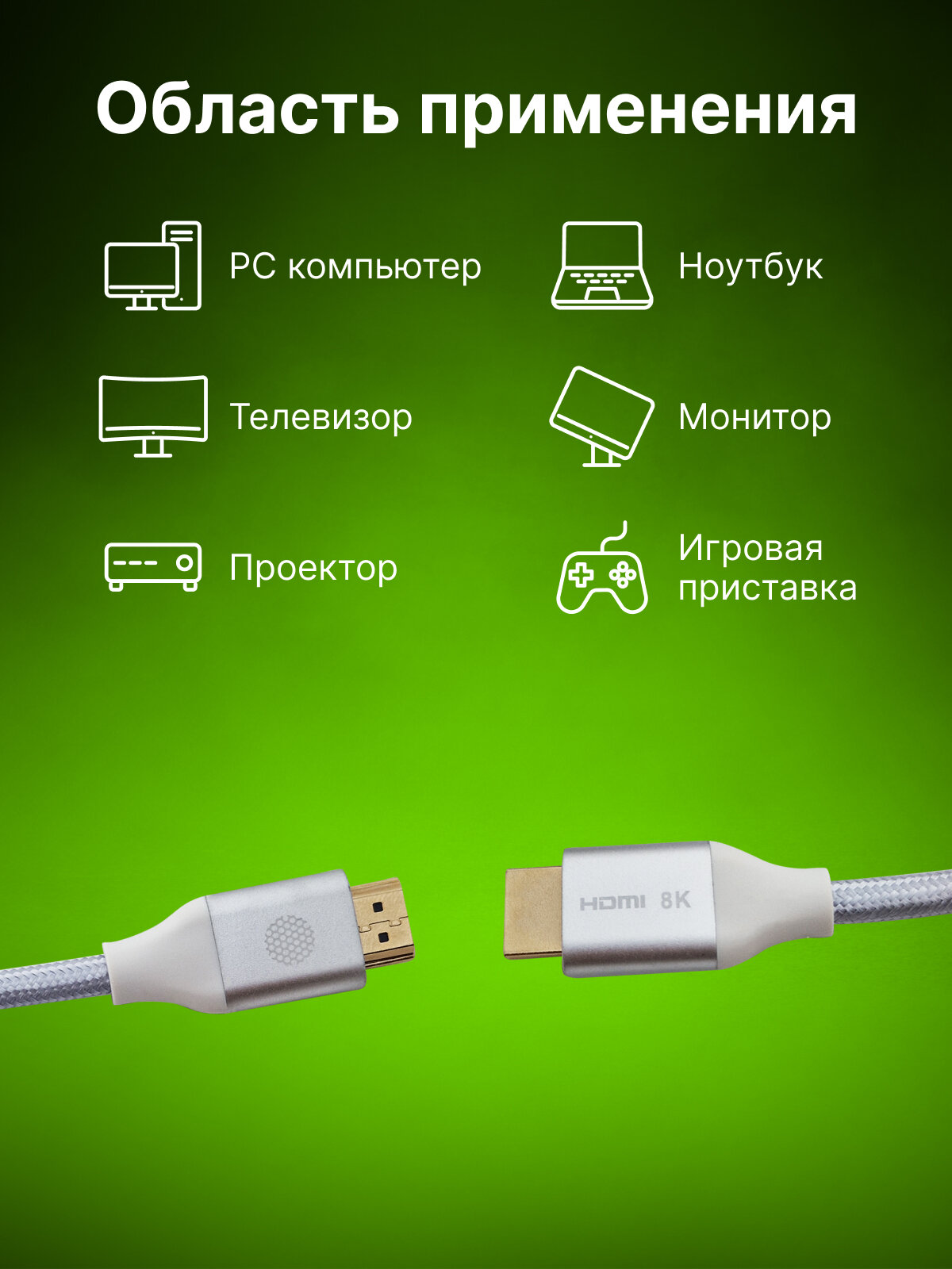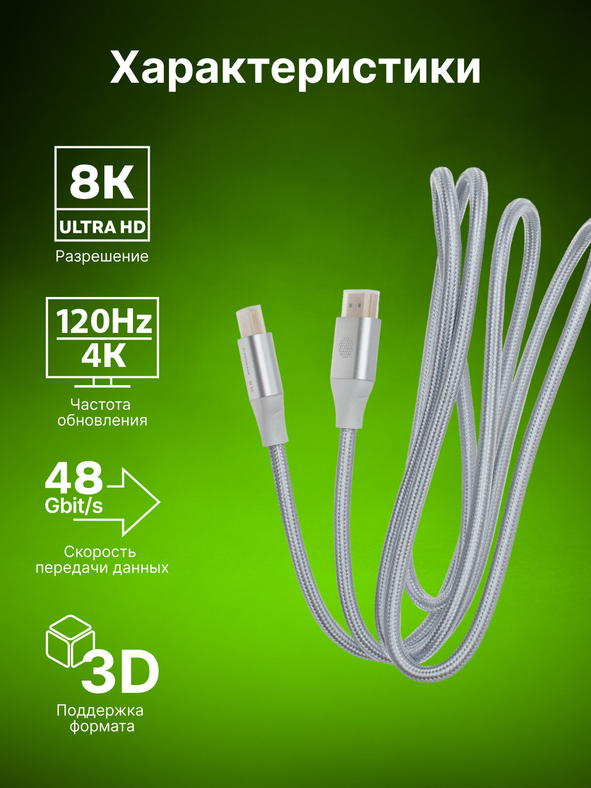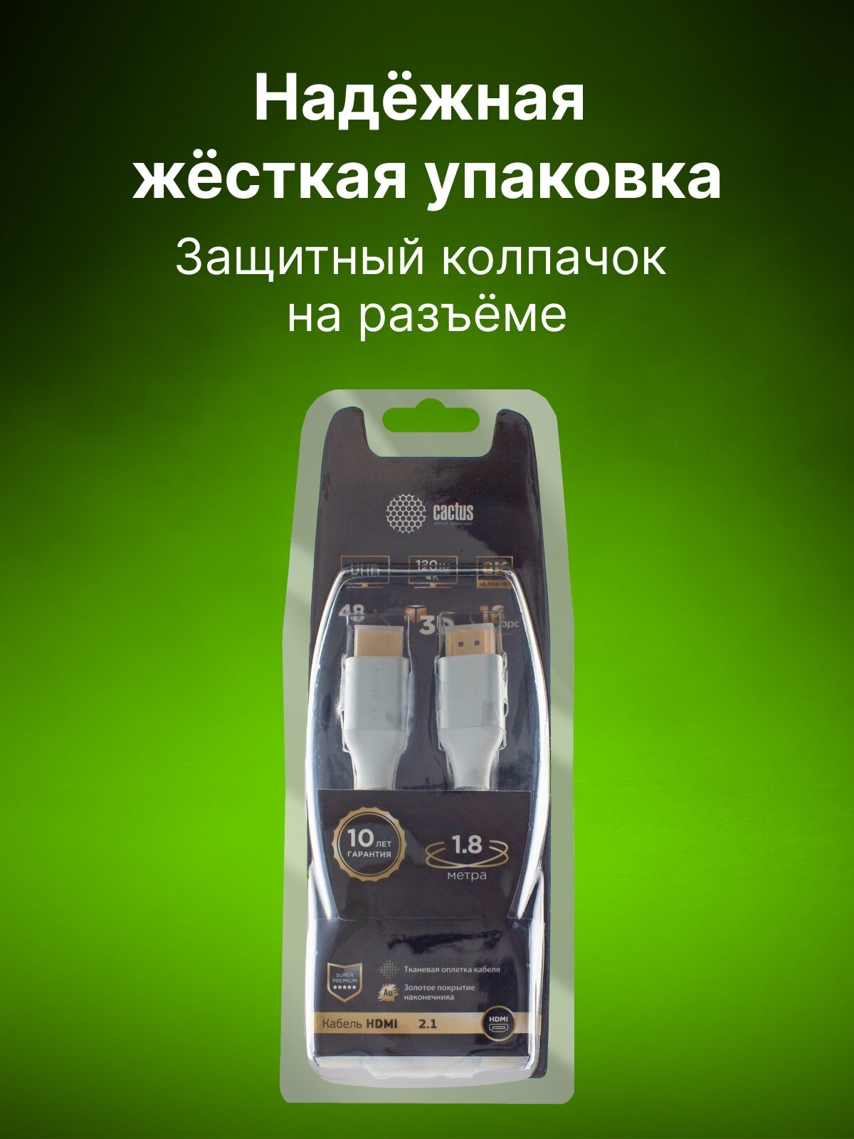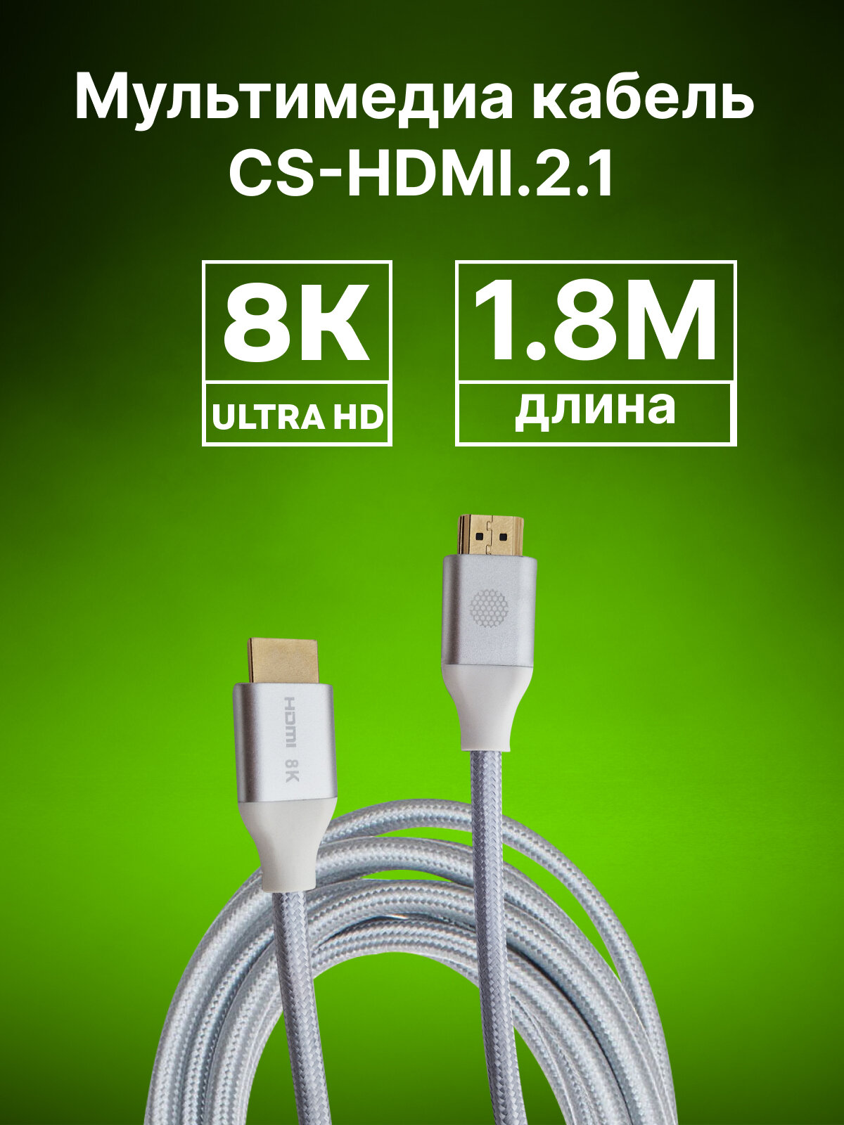 Кабель аудио-видео Cactus CS-HDMI.2.1-1.8 серебристый, разъем 1: HDMI (m), разъем 2: HDMI (m), длина 1.8м.