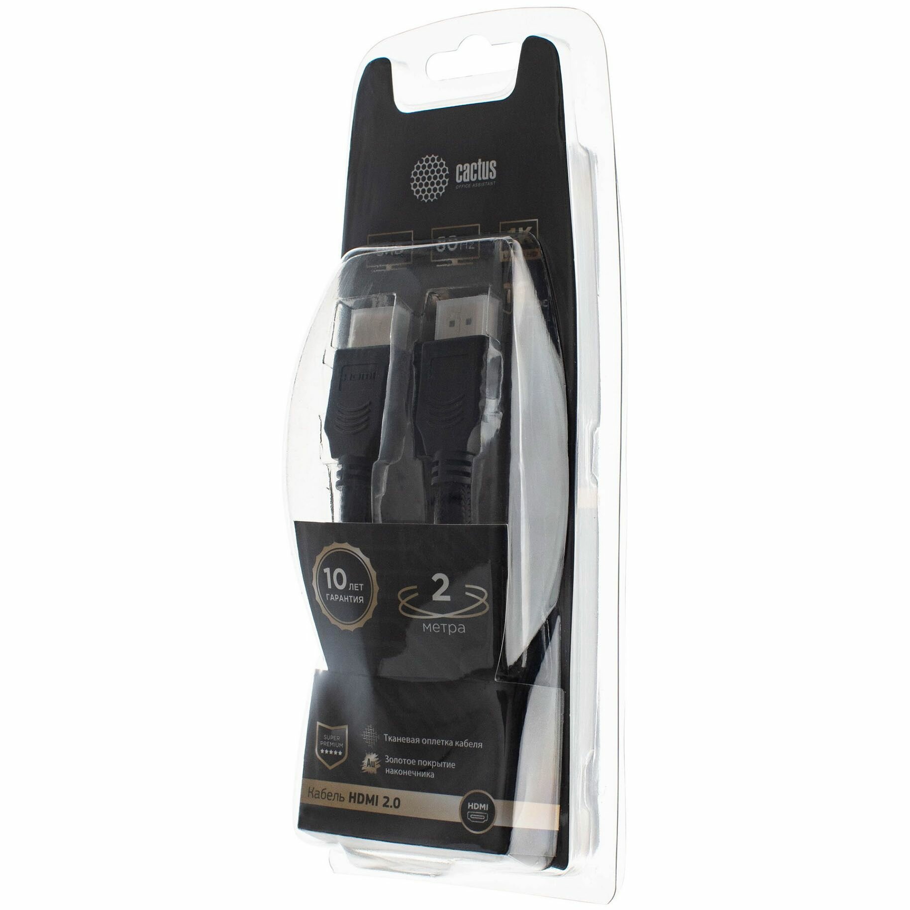 Кабель HDMI 2м Cactus CS-HDMI.2-2 круглый черный