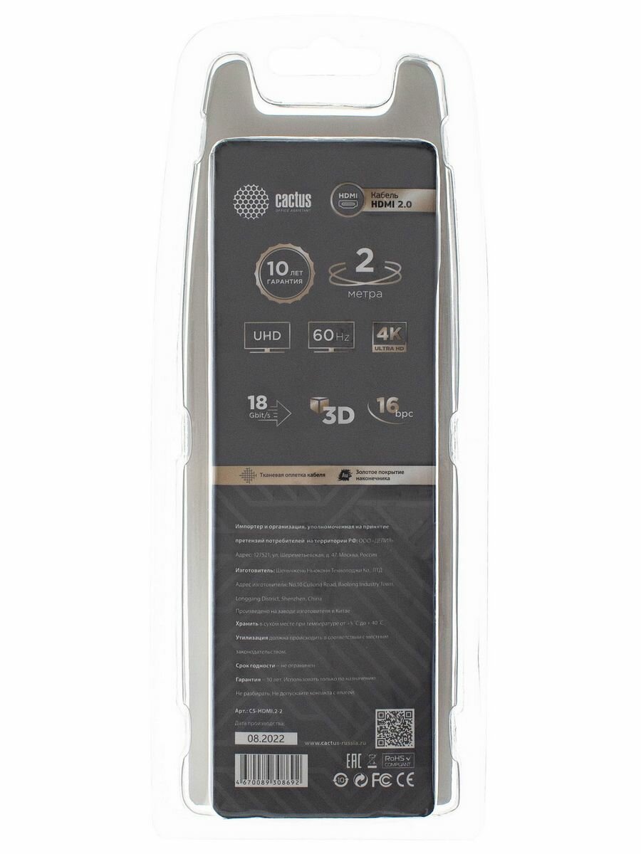 Кабель Cactus CS-HDMI.2-2 HDMI (m)/HDMI (m) v2 2м.