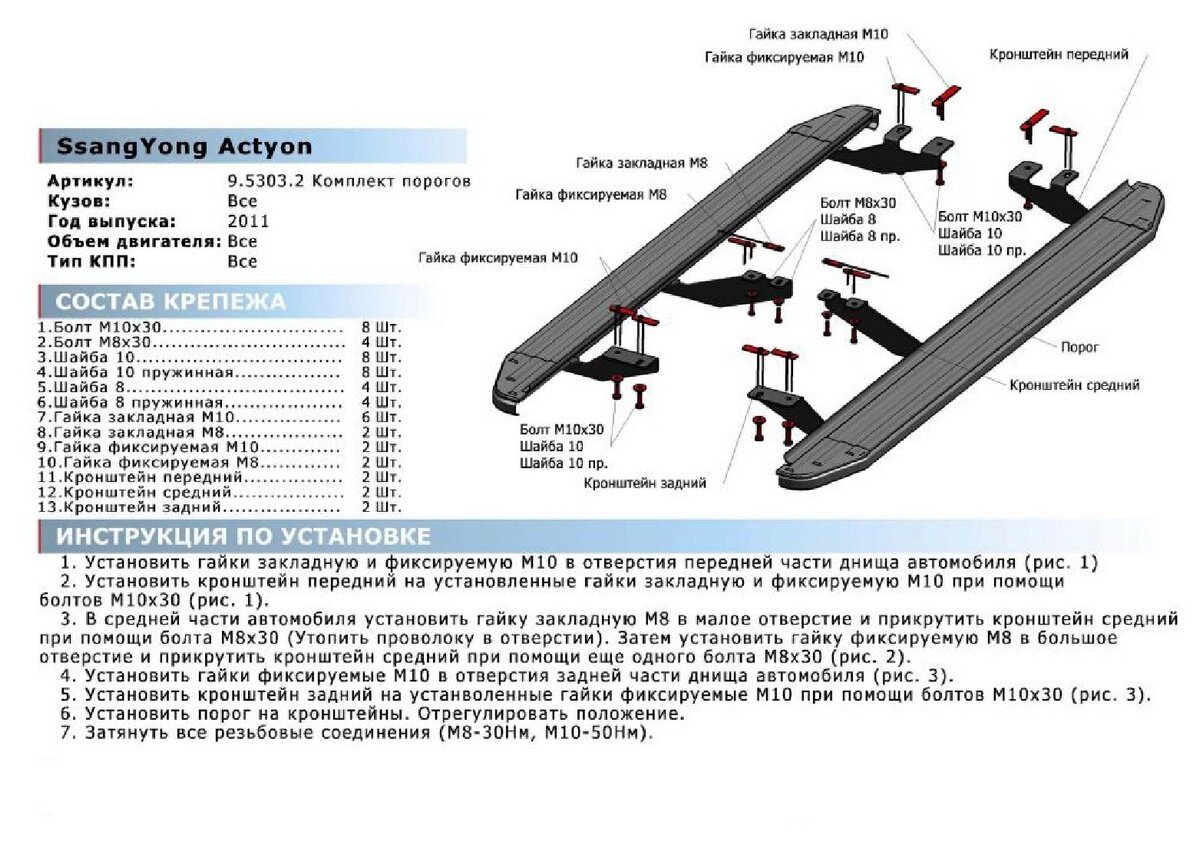 | Комплектация | 2 порог-полощадки, стальной крепеж, инструкция по установке, упаковка |