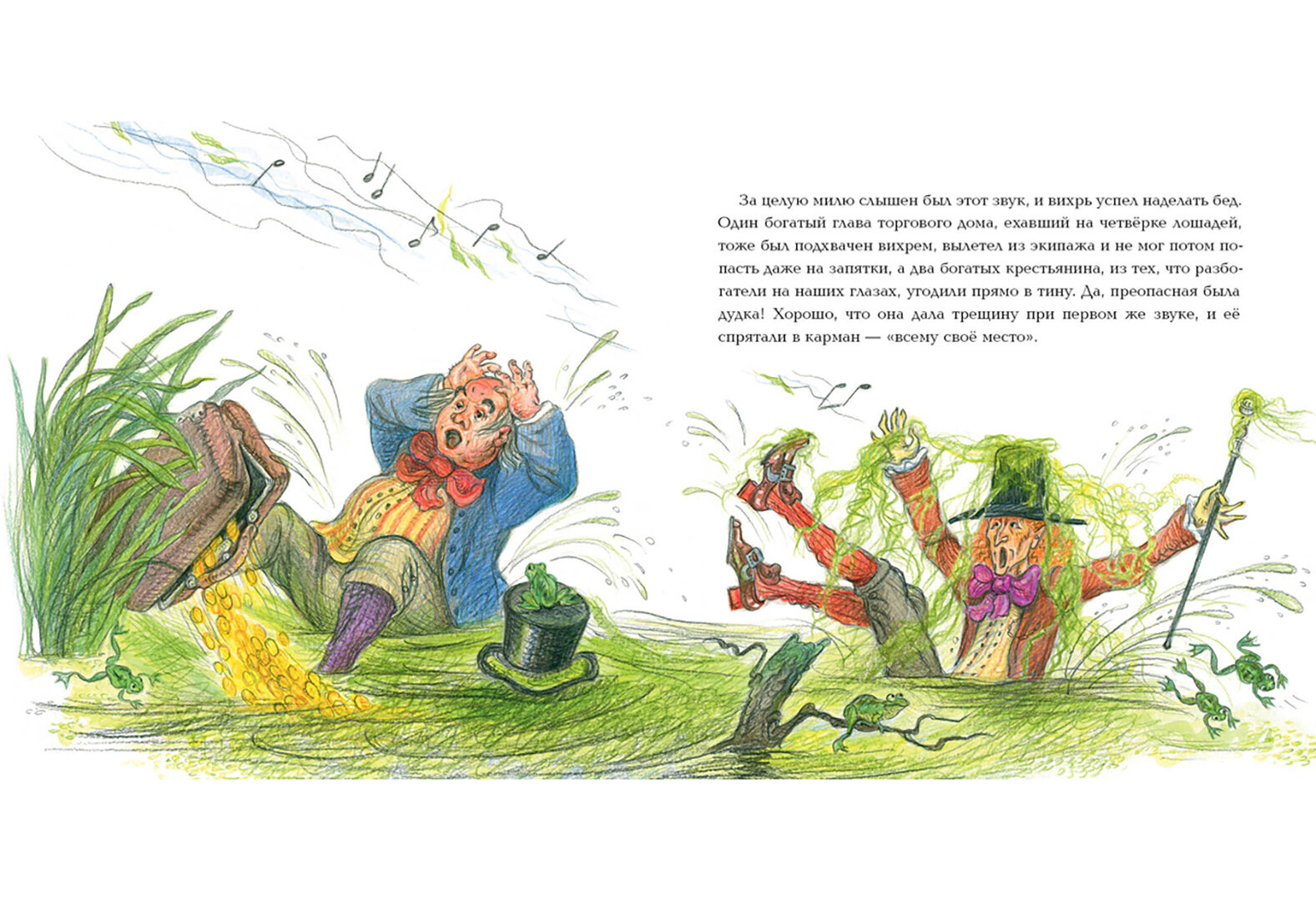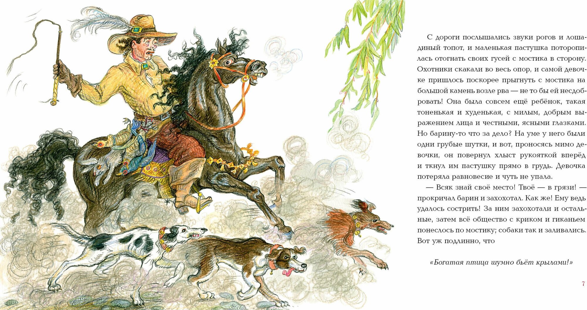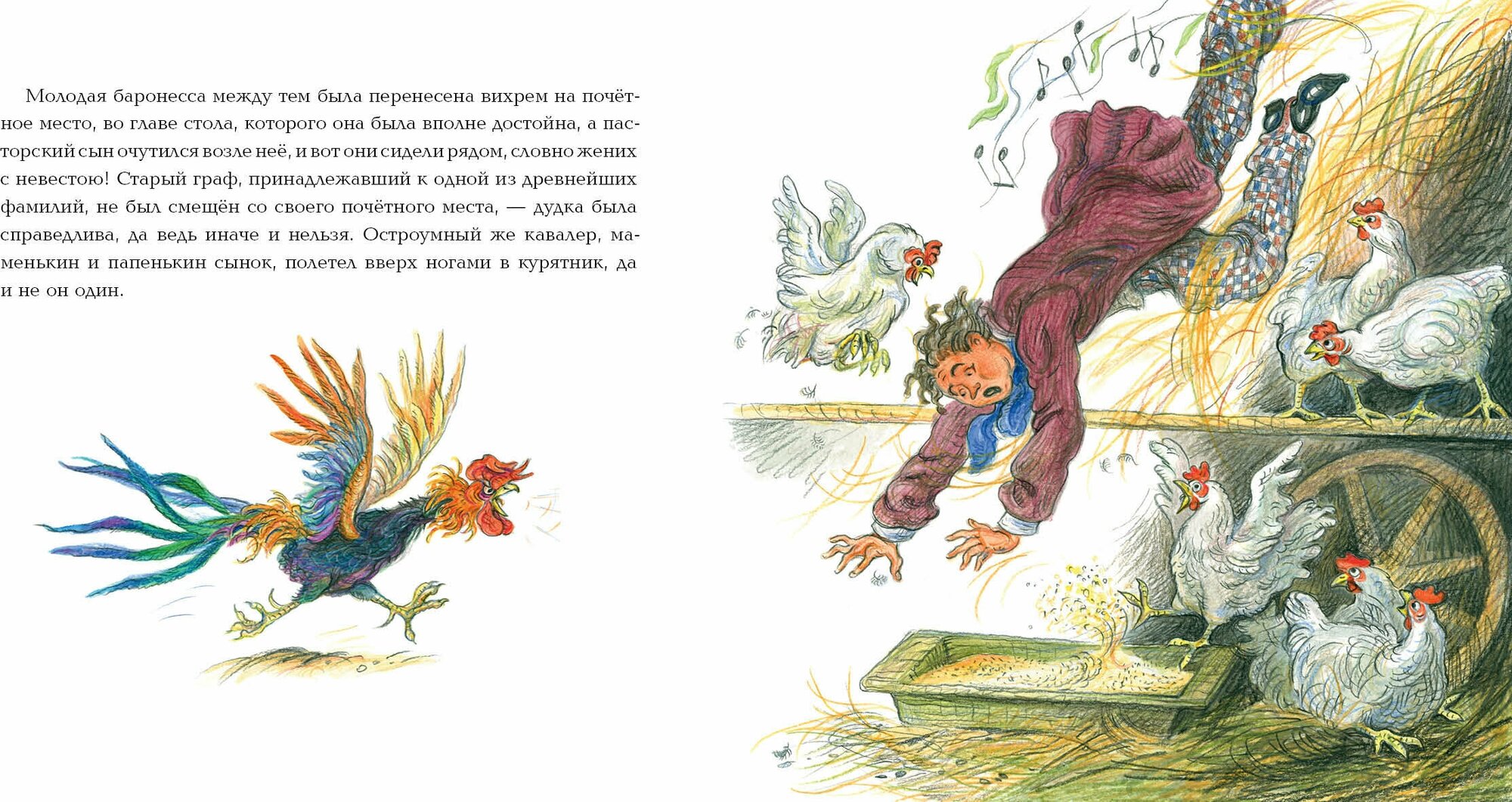 Картинки в этой книге просто изумительны! Очень хотелось не глядя купить её на выставке, однако цена поначалу останавливала - коштовато всё-таки за сорок с чем-то страниц столько платить. Поэтому решил прежде ознакомиться с текстом самой сказки...