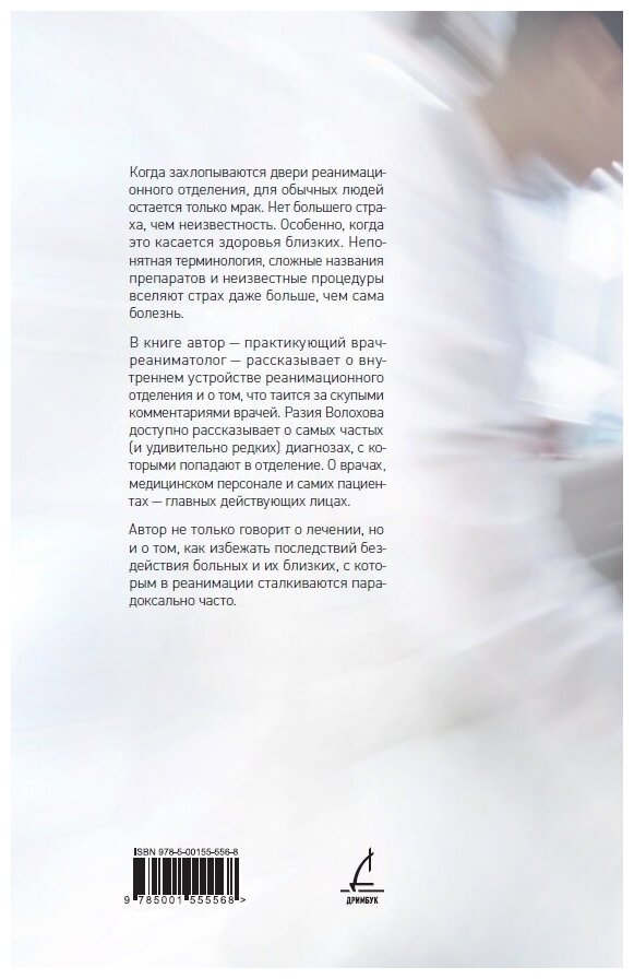 В книге автор - практикующий врач-реаниматолог - рассказывает о внутреннем устройстве реанимационного отделения и о том, что таится за скупыми комментариями врачей. Разия Волохова доступно рассказывает о самых частых (и удивительно редких) диагнозах, с которыми попадают в отделение. О врачах, медицинском персонале и самих пациентах - главных действующих лицах.