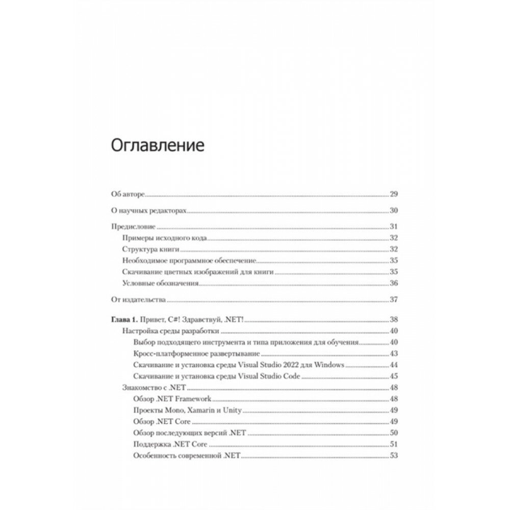 Шестое издание книги серьезно переработано, добавлены все новые функции, реализованные в версиях C# 10 и. NET 6. Вы изучите принципы объектно-ориентированного программирования, научитесь писать, тестировать и отлаживать функции, реализовывать интерфейсы и наследовать классы. В издании рассматриваются API. NET, призванные решать такие задачи, как управление данными и их запросами, мониторинг и повышение производительности, а также работа с файловой системой, асинхронными потоками, сериализацией и шифрованием. В книге приведены примеры кода кросс-платформенных приложений, веб-сайтов и служб, которые вы можете создавать и развертывать на основе ASP. NET Core. После покупки предоставляется дополнительная возможность скачать книгу в формате epub.