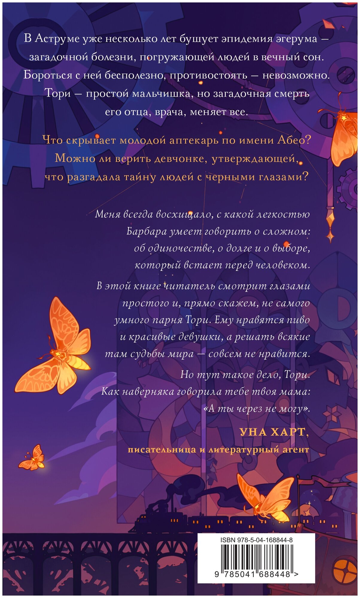 В Аструме бушует непонятная болезнь, вводящая в вечный сон. Неспящие – это особенные люди, которые вынуждены принимать специальную микстуру, не позволяющую заснуть им вечным сном. Первые признаки заражения – это удлинившийся сон, томное состояние и черные глаза. Но если глаза уже почернели, то очнуться вновь уже практически нет шансов. Главный герой этого романа, Тори, сталкивается с болезнью лично: его друг в какой-то момент засыпает и не просыпается. Новость о загадочной смерти отца вынуждает Тори примкнуть к его коллеге и вместе с ним отправиться на поиски девушки, которая, как говорят, смогла побороть болезнь. Интересная, захватывающая и динамичная история с душевными персонажами, которым сопереживаешь до последней страницы!
