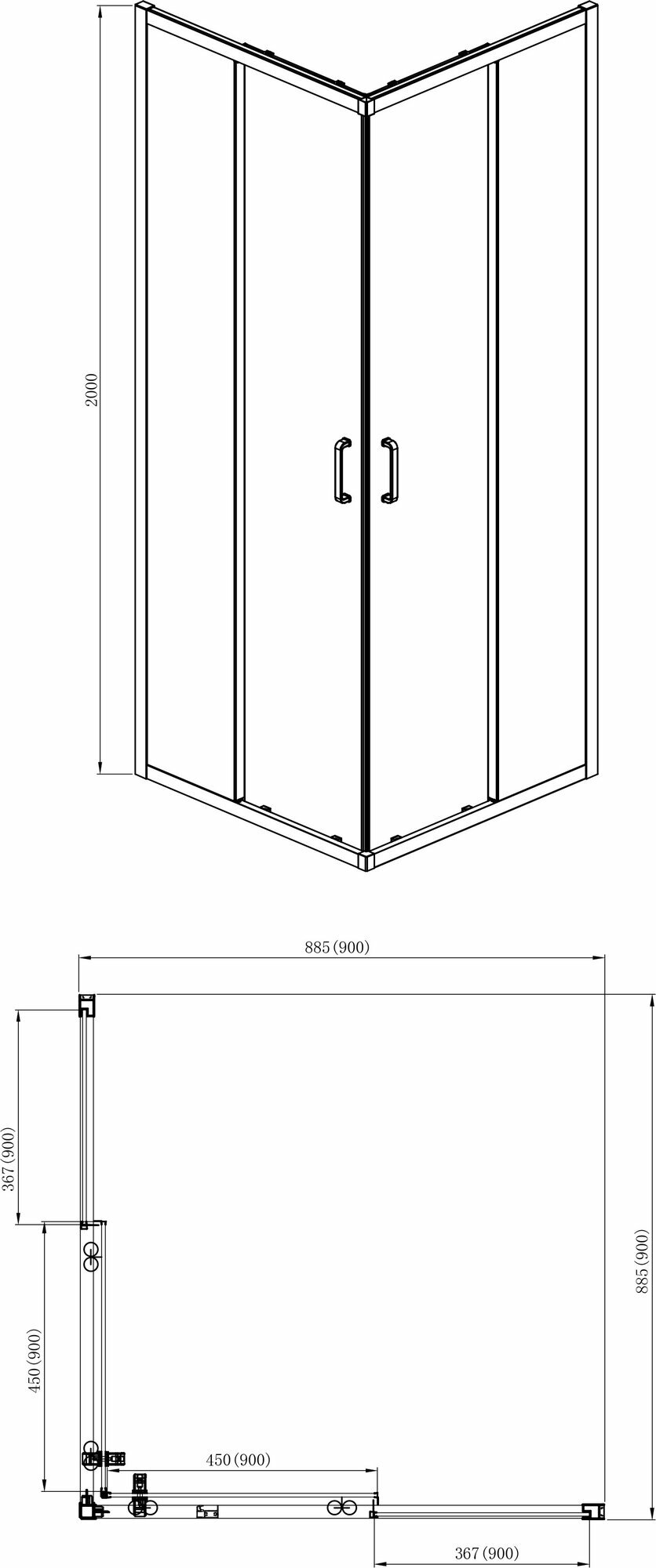 - Размеры (ШхВхД): 900x2000х900 мм.