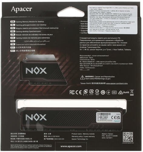 Модуль памяти Apacer NOX - это изысканный дизайн панели освещения с гравировкой, высококачественный алюминиевый радиатор, низкая задержка и энергопотребление. Все это ставит модуль памяти в разряд отличных игровых решений для вашего ПК.