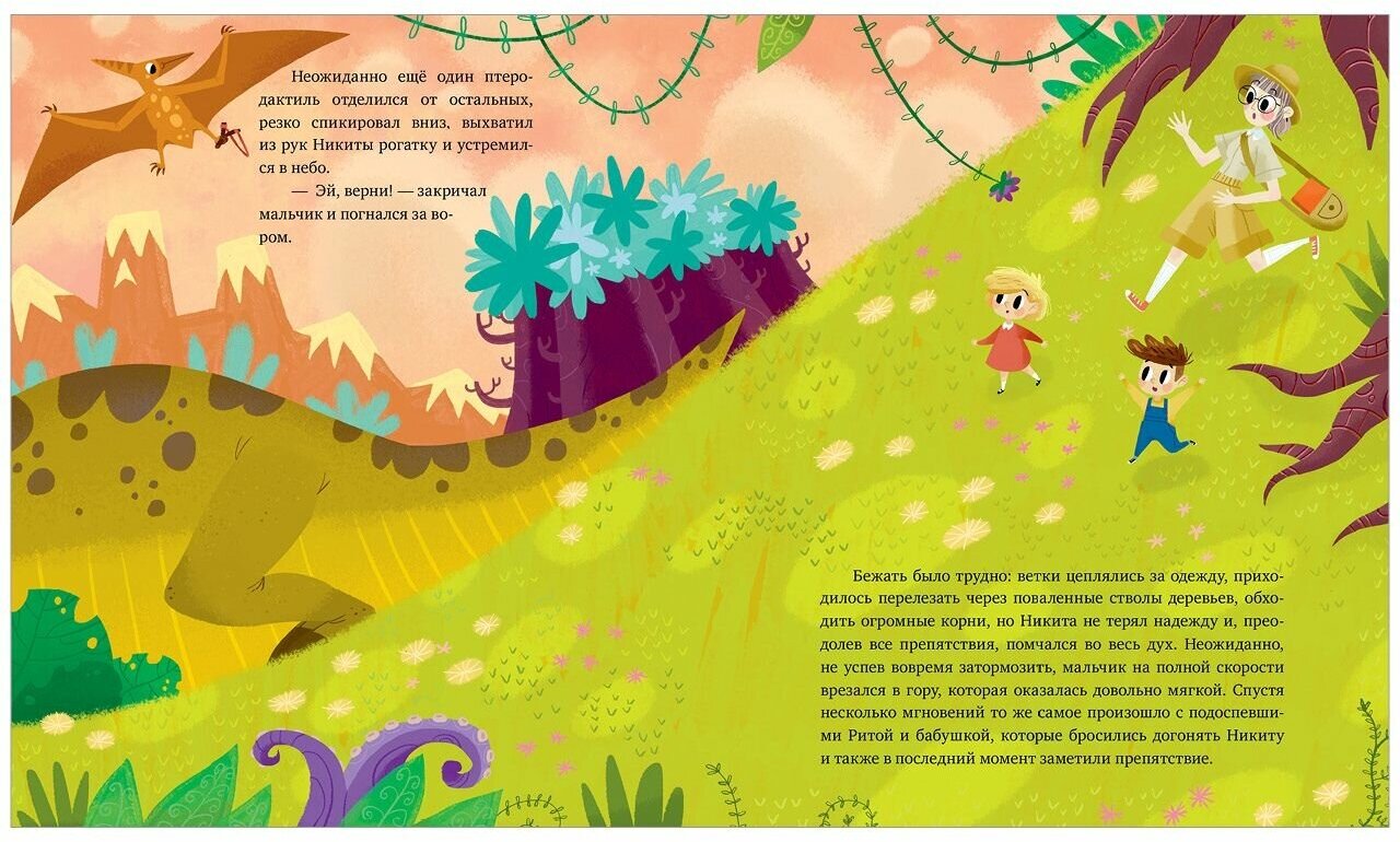 В «Волшебной книге динозавров» реальные факты вплетены в захватывающую сказку, так что это одновременно интересное и очень познавательное чтение. А на страничках юного палеонтолога ребенок сможет лучше узнать всех динозавров, которых встретили Никита и Рита.