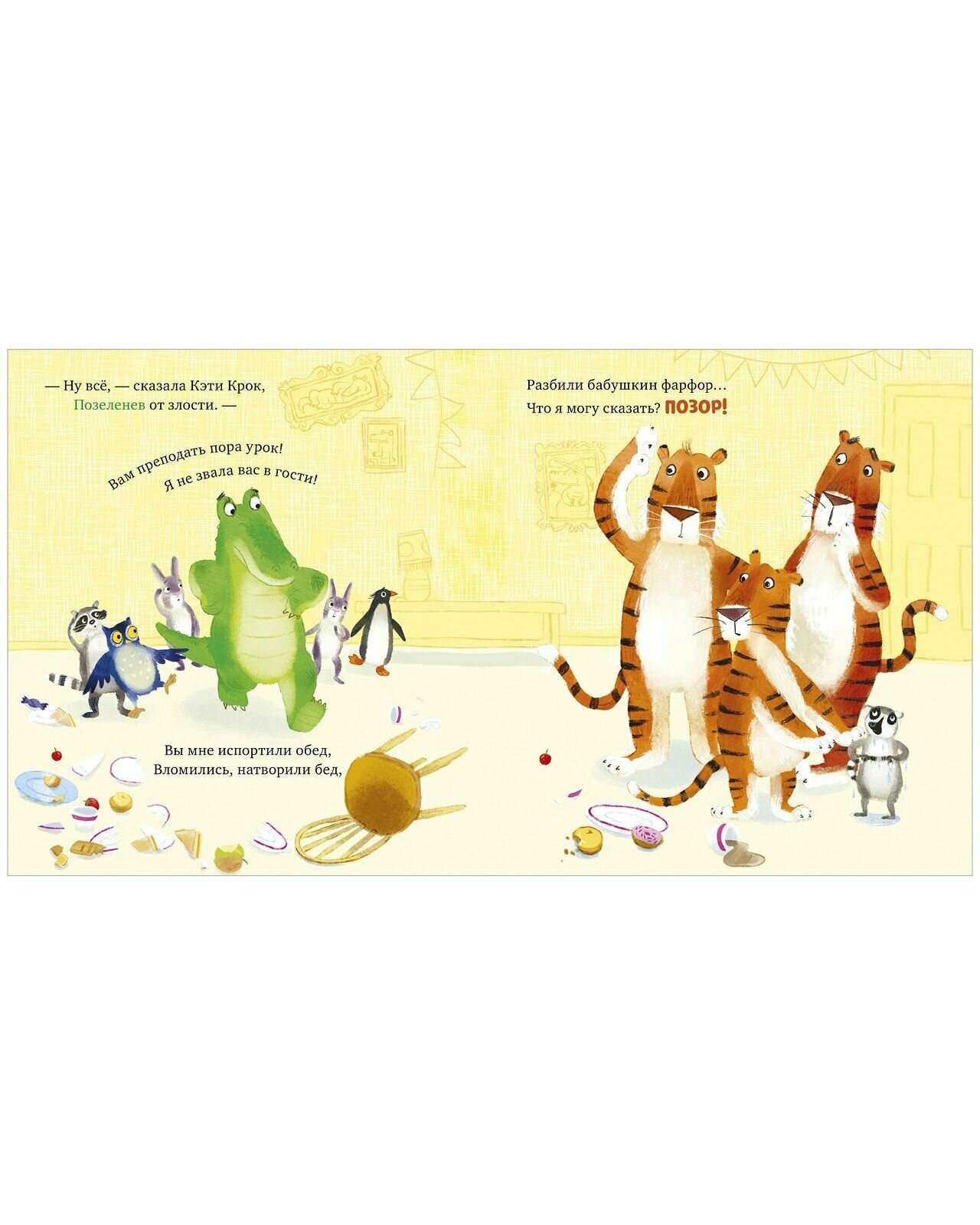 Однажды Кэти Крок устроила обед и пригласила гостей. Но прямо во время праздника в домик ворвались озорные тигрята… Настроение хозяйки и гостей было испорчено, и тигрят выставили за дверь. Догадались ли братцы, что пора освоить этикет? И готовы ли они выучить все хорошие манеры?