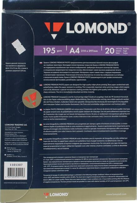 Полуглянцевая (Semi Glossy) микропористая фотобумага. Микропористое покрытие обеспечивает столь же высокое качество печати, как и традиционная фотография. Благодаря полиэстеровому покрытию бумажной основы бумага Lomond Premium Photo совершенно не подвержена короблению после прохода через принтер даже при самой интенсивной «заливке» чернилами.