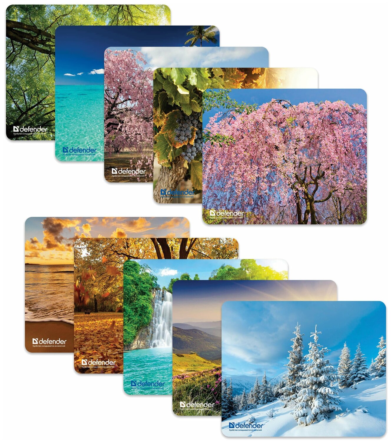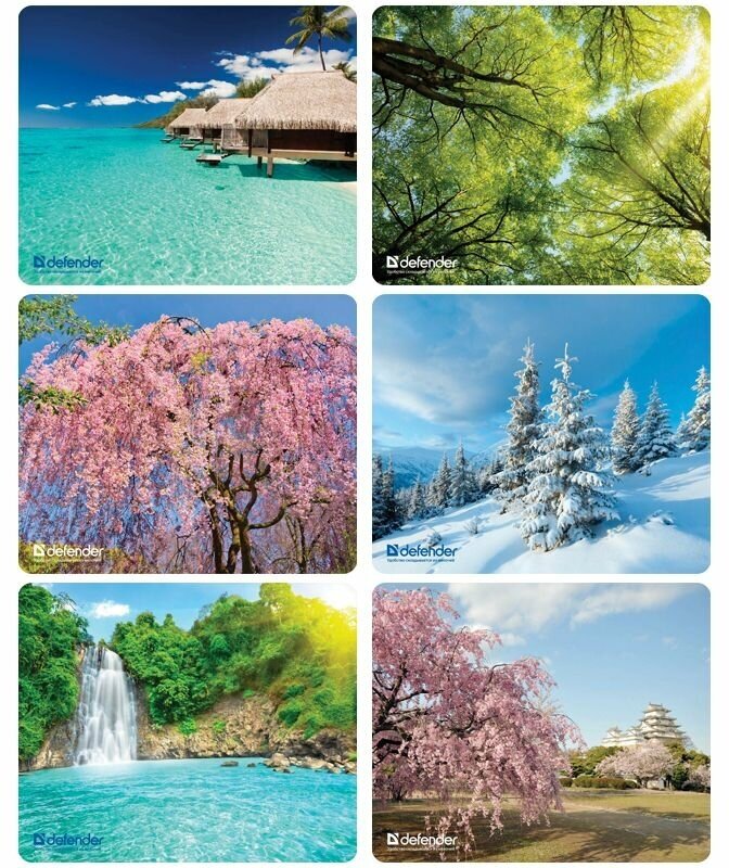 Комфорт в работе с персональным компьютером имеет существенное значение. Складывается это удобство из многих мелочей. Одной из таких деталей является коврик для мыши. Компьютерный манипулятор будет эффективней функционировать и дольше сохранит работоспособность, находясь на специально подготовленной поверхности. Коврик Defender тканевый – элегантный аксессуар, предлагающий 10 вариантов изображений живописных пейзажей, которые выполнены в мягких тонах, не напрягающие зрение.