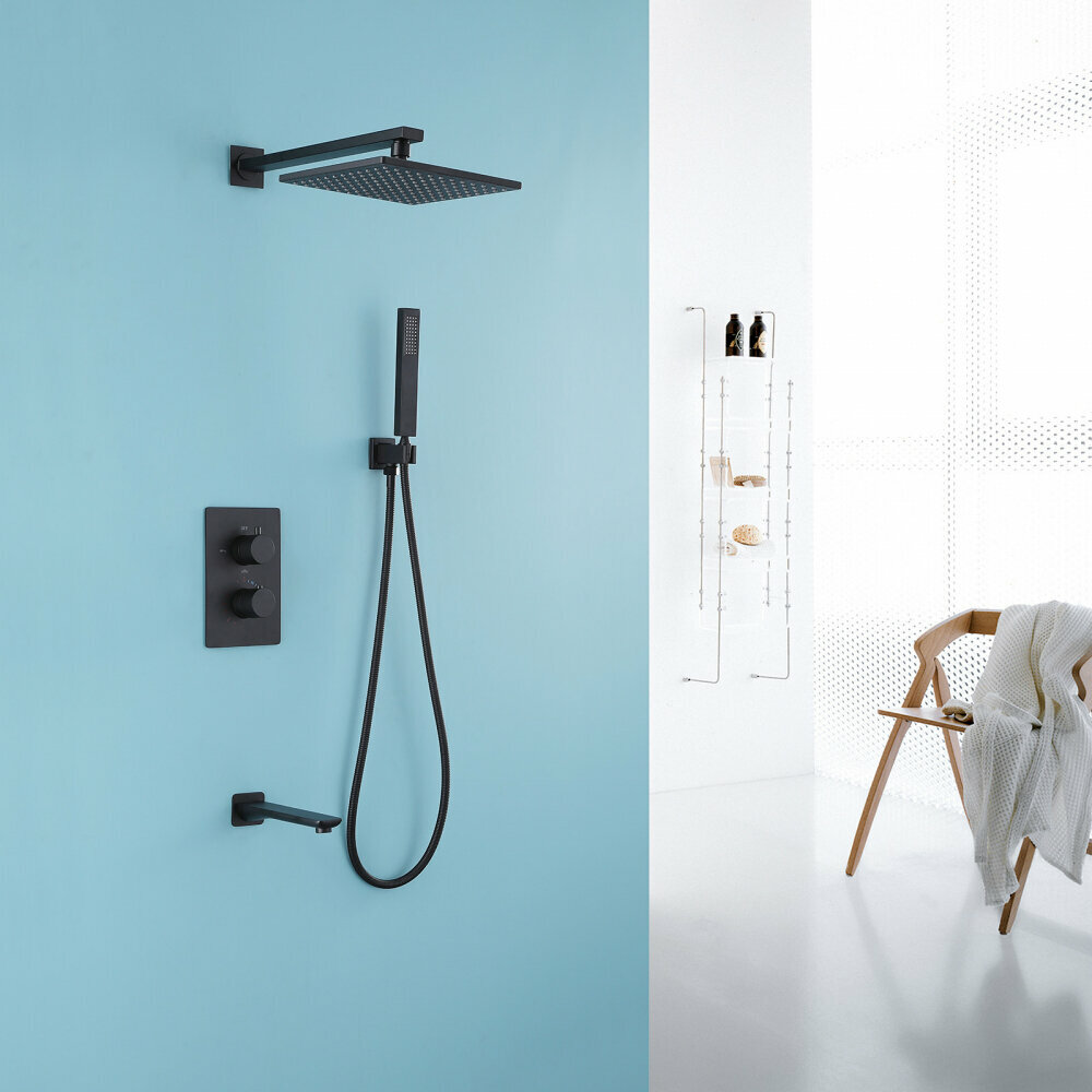Душевой набор Abber Weiss Insel AF8050B выполнен в современном стиле из латуни. Механизм смесителя представлен керамическим картриджем.