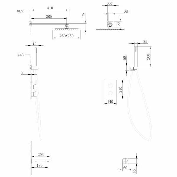 | Состав комплекта | верхний душ, смеситель, излив, шланговое подключение, душевой гарнитур |
