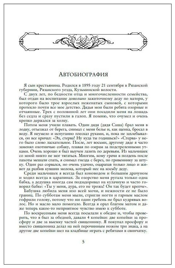 Рассматриваю полное собрание сочинений Есенина как своеобразную историю его жизни, его авторизированную биографию в стихах. Не знаю другого поэта настолько глубоко и ярко воплощенного в его же собственной лирике. Стихи как разговор, в котором одна сторона - это читатель, другая же сторона - поэт, собеседник, откровенно излагающий читателю свою жизнь. При этом очень мастерски и достоверно используется Есениным русский язык. И русский литературный, и русский народный языки. Технически книга изготовлена прекрасно, я никаких полиграфических дефектов не нашёл.