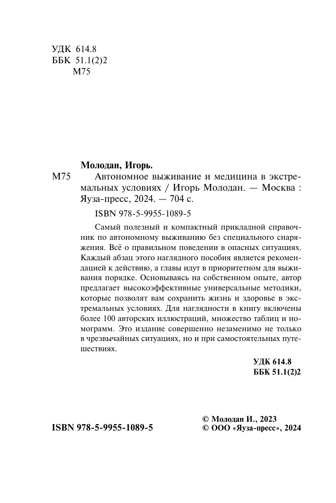 Автономное выживание и медицина в экстремальных условиях (Игорь Молодан); Яуза-пресс ООО, 2025
