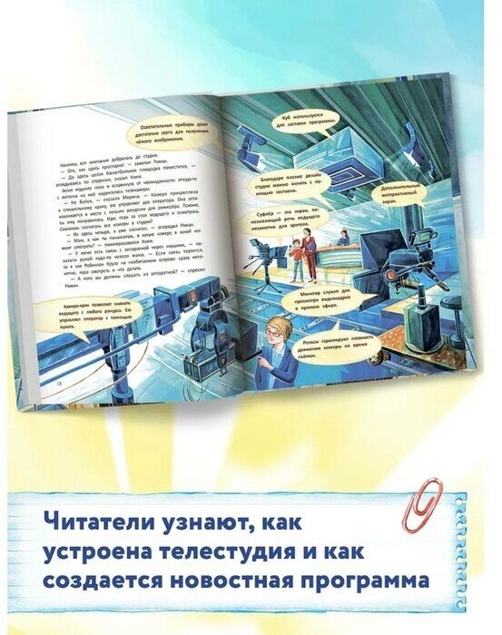 Особенно понравился сюжет книги, благодаря которому, кроме основной идеи, школьники дополнительно познакомятся с разными профессиями на телевидении.