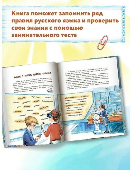 Где говорят на родном языке красиво и правильно? Конечно же, на телевидении! Вместе с героями книги читатель отправится в увлекательное путешествие по телестудии, узнает, как делают новости и почему так важно говорить грамотно, а также вместе с роботом Росей пройдёт занимательный тест по русскому языку, проверит свои знания и лучше усвоит правила грамотной речи. Тест дополнен QR-кодами с артикуляционной гимнастикой от телеведущей Ирины Россиус, правильными ответами на задания и увлекательными рассказами героев книги.