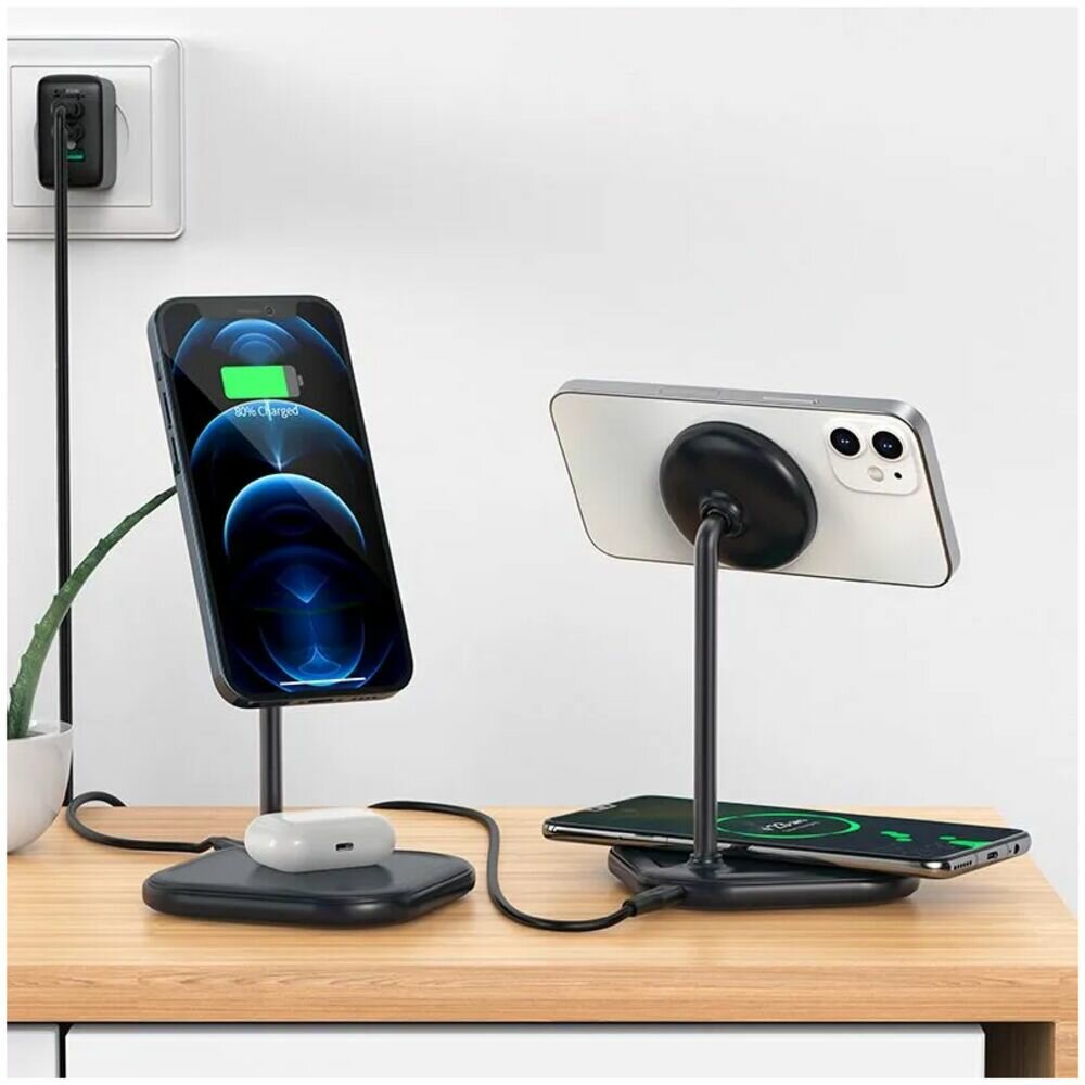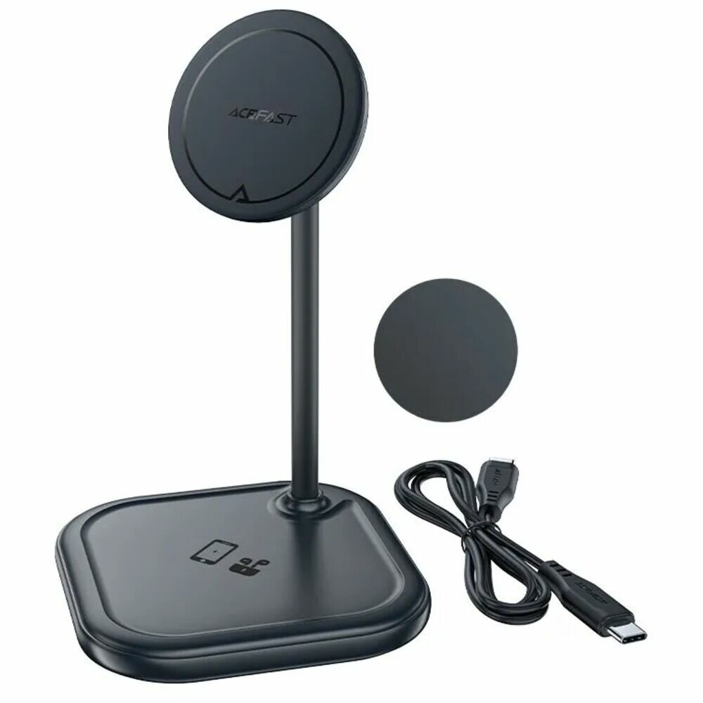 Бренд Acefast основан на волне стремительного развития индустрии электронных и цифровых технологий, что потребовало от компании быстрого реагирования на потребности потребителей. С момента своего создания бренд сосредоточился на разработке высококачественных электронных и цифровых продуктов, включая зарядные устройства, аудиосистемы, кабели, интеллектуальную электронику и средства личной гигиены. Бренд настаивает на идее высокого качества продукции в основе и использует самые передовые технологии в качестве движущей силы для предоставления надежных и эффективных продуктов потребителям во всем мире. Беспроводное зарядное устройство ACEFAST desktop 2-in-1 wireless charging holder серое Беспроводная зарядка AceFast 15W Qi с функцией MagSafe – идеальное решение для зарядки вашего iPhone без лишних проводов и хлопот. Этот зарядный док совместим с iPhone, поддерживающим технологию беспроводной зарядки Qi.Основное преимущество этой зарядки – наличие функции MagSafe. Она позволяет магнитно притягивать и удерживать ваш iPhone в оптимальном положении для зарядки. Это обеспечивает надежное соединение между зарядной площадкой и iPhone, предотвращая смещение или падение устройства во время зарядки.Зарядка имеет выходную мощность 15W, что позволяет быстро и эффективно заряжать ваш iPhone. Вы сможете зарядить свое устройство за короткое время, что особенно удобно, когда вам нужно быстро пополнить заряд батареи перед выходом из дома или важным событием.Кроме того, этот зарядный док оснащен держателем для Apple AirPods. Вы сможете удобно и безопасно разместить свои беспроводные наушники на этом держателе, пока они заряжаются. Благодаря магнитной сист.