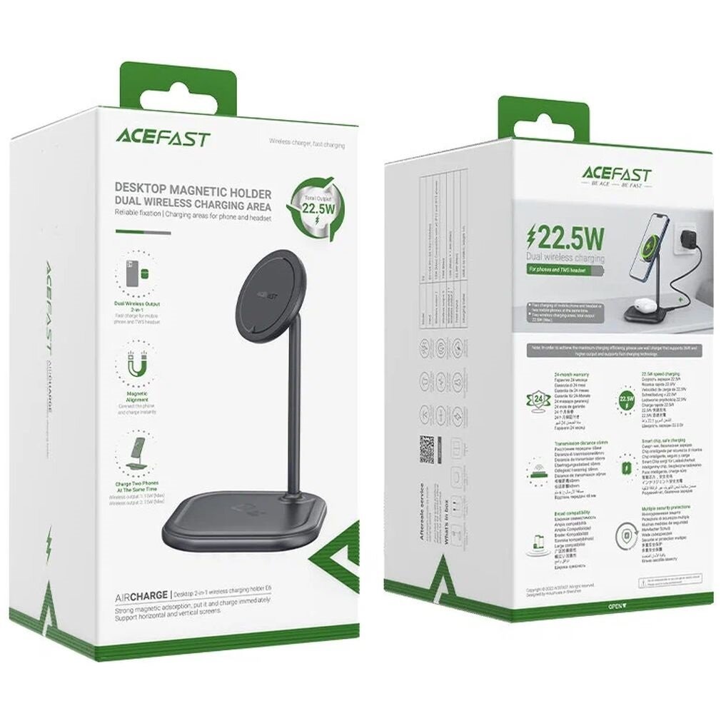 | Наименование модели | E6 desktop 2-in-1 wireless charging holder - Gray |