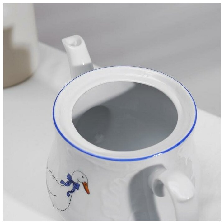 человек. Основной цвет белый, форма Рококо, декор Гуси. Изображение и количество гусей в ассортименте. Набор состоит из 15 предметов. Товар выполнен из фарфора завода "Cmielow", украшен богатым рельефом,