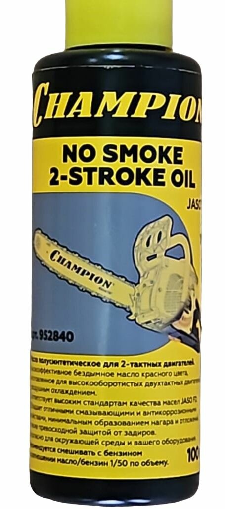 Масло для 2-тактных двигателей полусинтетическое Champion JASO FD соответствует высоким стандартам качества масла JASO FD и ISO-L-EGD, специально разработано для двухтактных двигателей с воздушным охлаждением. ''NO SMOKE TWO STROKE'' безопасно для окружающей среды, для вас и для вашего оборудования. В ходе испытаний присадка CHAMPION ''NO SMOKE TWO STROKE'' показала отличные антикоррозийные и высокие смазывающие свойства; незначительное образование нагара и отложений; превосходную защиту от задиров; минимальное засорение выхлопного канала.