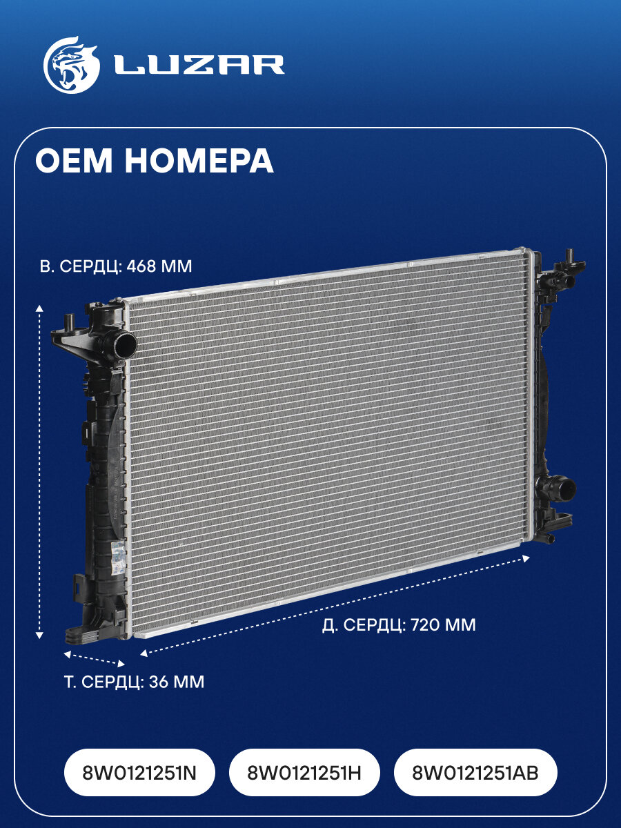Сервис сравнения цен СкидкаГИД предлагает сравнить цены на товар «Радиатор охлаждения для автомобилей Audi Q7 (15-)/A6 (18-)/A7 (18-)/A8 (17-)/Touareg (18-) 3.0T/3.0TDi LUZAR (LRc 1860)»