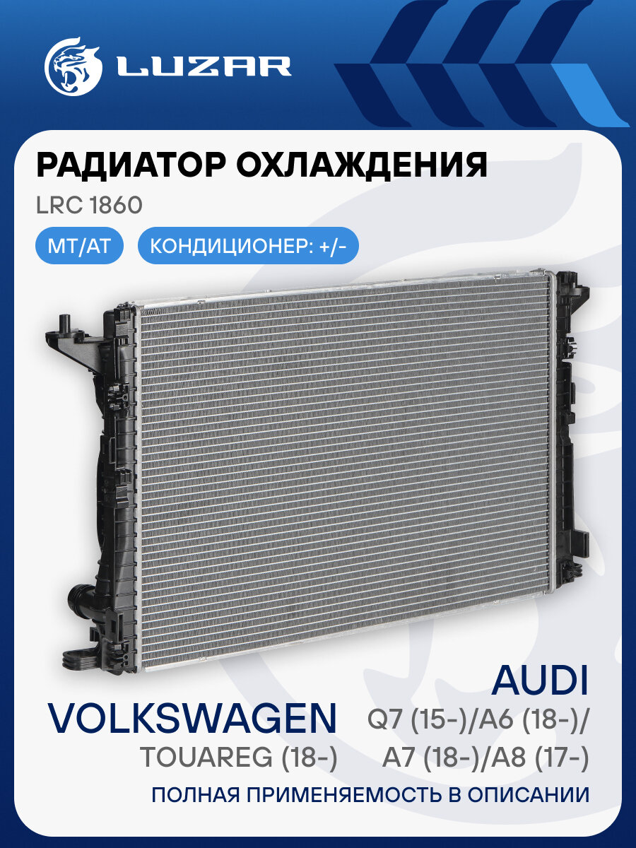 Радиатор охлаждения для автомобилей Audi Q7 (15-)/A6 (18-)/A7 (18-)/A8 (17-)/Touareg (18-) 3.0T/3.0TDi LUZAR (LRc 1860)