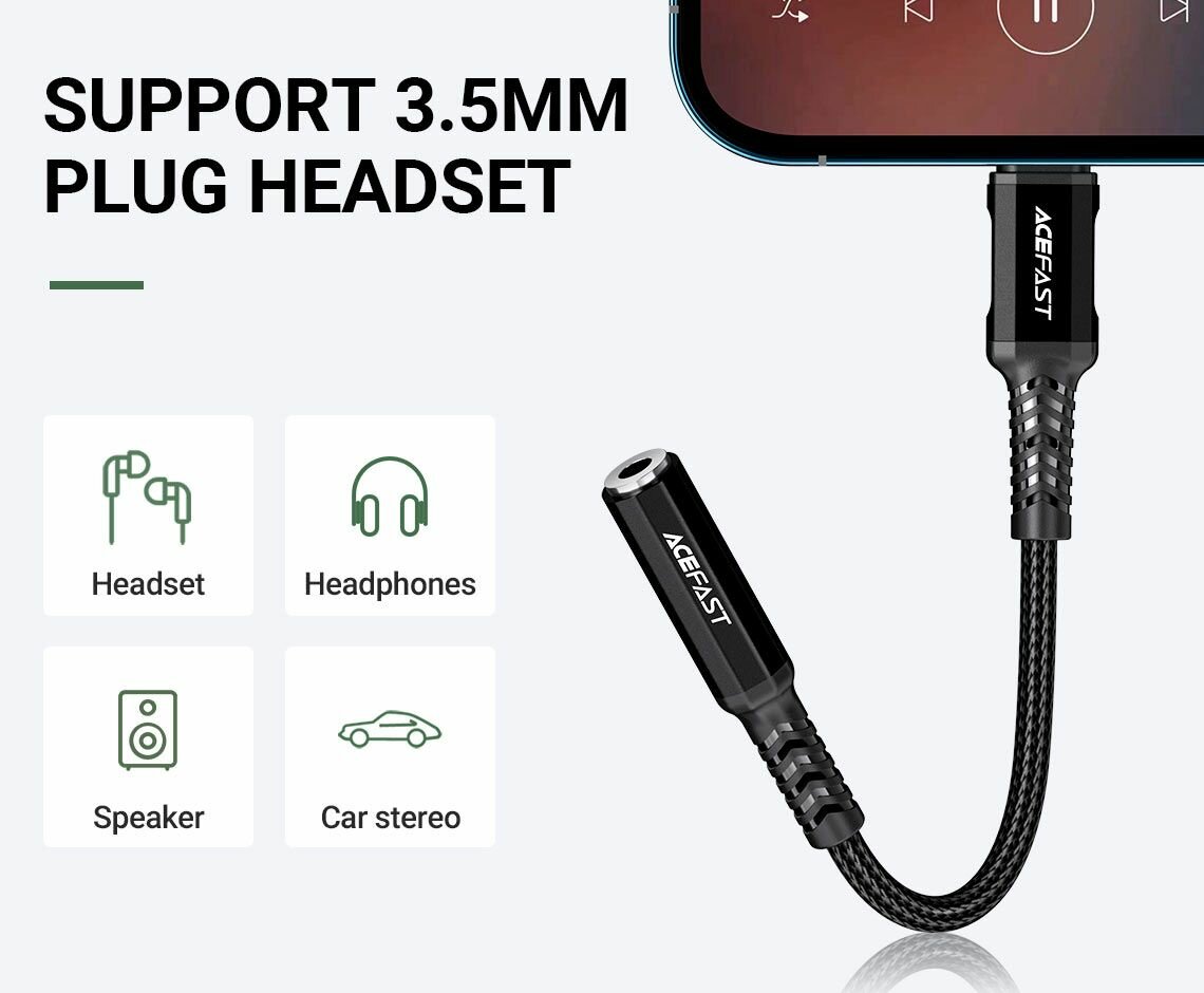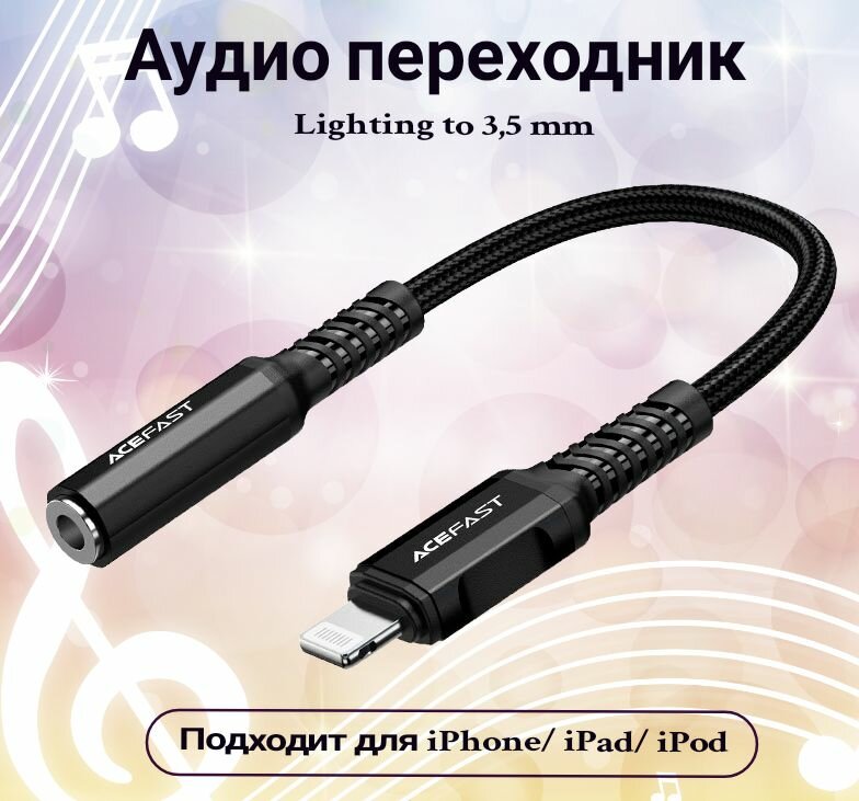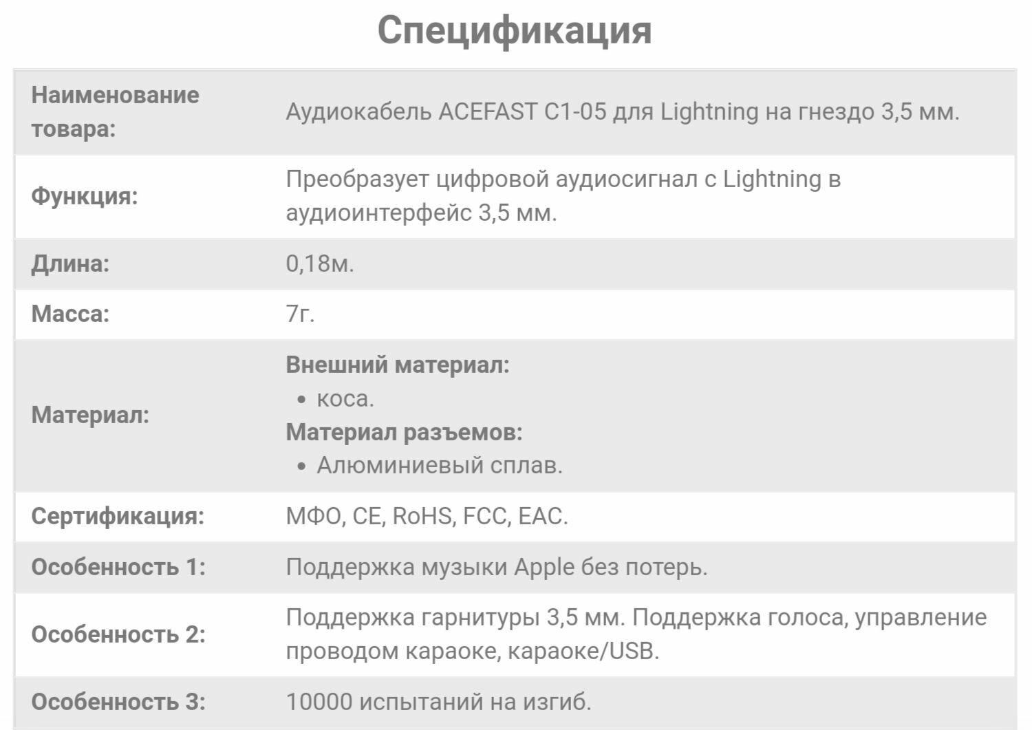 | Наименование модели | C1-05 Lightning to DC3.5 aluminum alloy headphones adapter cable - Black |