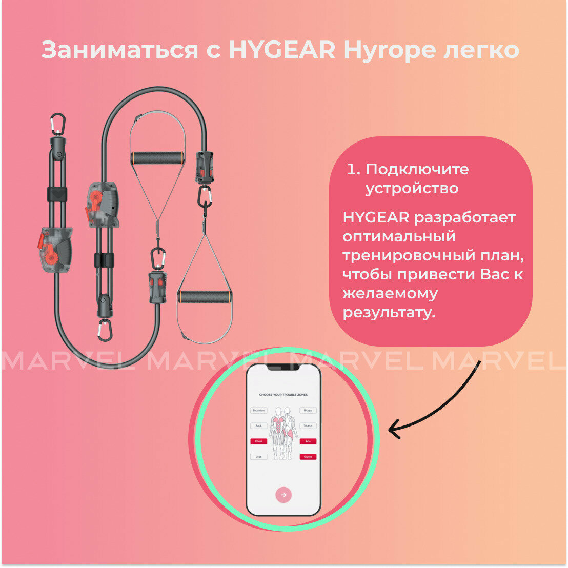 Интеллектуальная система индивидуальных тренировок HYGEAR позволяет заниматься спортом в любое время. Её можно использовать в тренажёрном зале или в домашних условиях. Регулярные занятия с интеллектуальной системой индивидуальных тренировок HYGEAR повышают выносливость, тренируют все группы мышц, помогают поддерживать форму или избавиться от лишних килограммов.