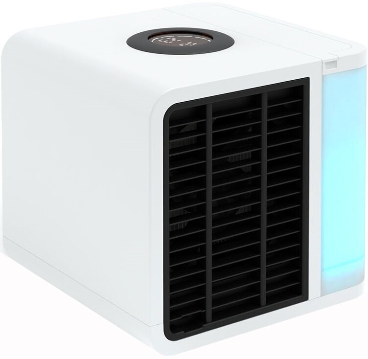 | Прочие особенности и свойства | ЕvaLIGHTplus — этоиспарительный воздухоохладитель со съемным резервуаром для воды и улучшенными системами защиты от утечек. Вы можете вносить точные корректировки с помощью колесика управления и регулировать подсветку устройства в зависимости от настроения. Он может питаться от блока питания, ноутбука или розетки. Модель также оснащена светодиодной подсветкой. |
