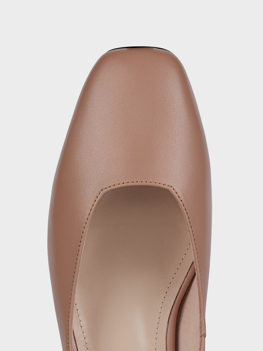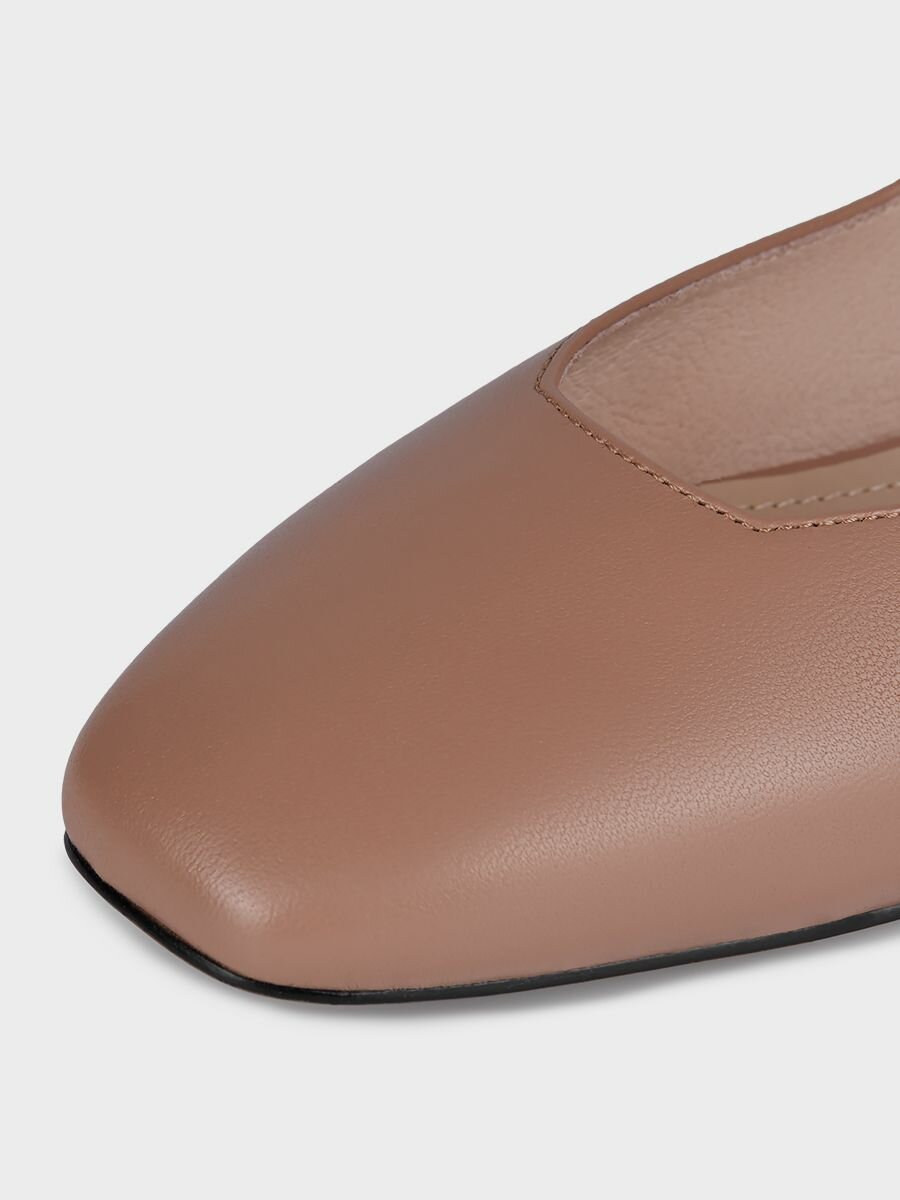 Кокетливые бежевые туфли-лодочки выглядят очень эффектно благодаря необычной форме каблука, его геометрически четкие грани напоминают драгоценный камень. Такие туфли хорошо сочетаются с повседневной одеждой, они дополнят и образ в романтическом стиле. Невысокий надежный каблук, удобная подошва и мягкая стелька обеспечат вам комфорт во время долгих прогулок.