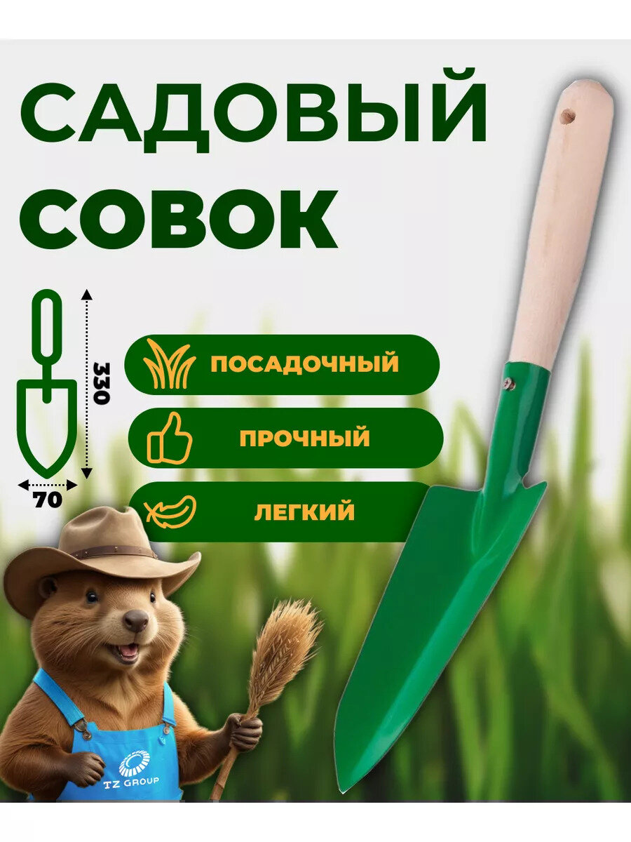 Совок посадочный РОСТОК с деревянной ручкой,узкий, рабочая часть 160мм