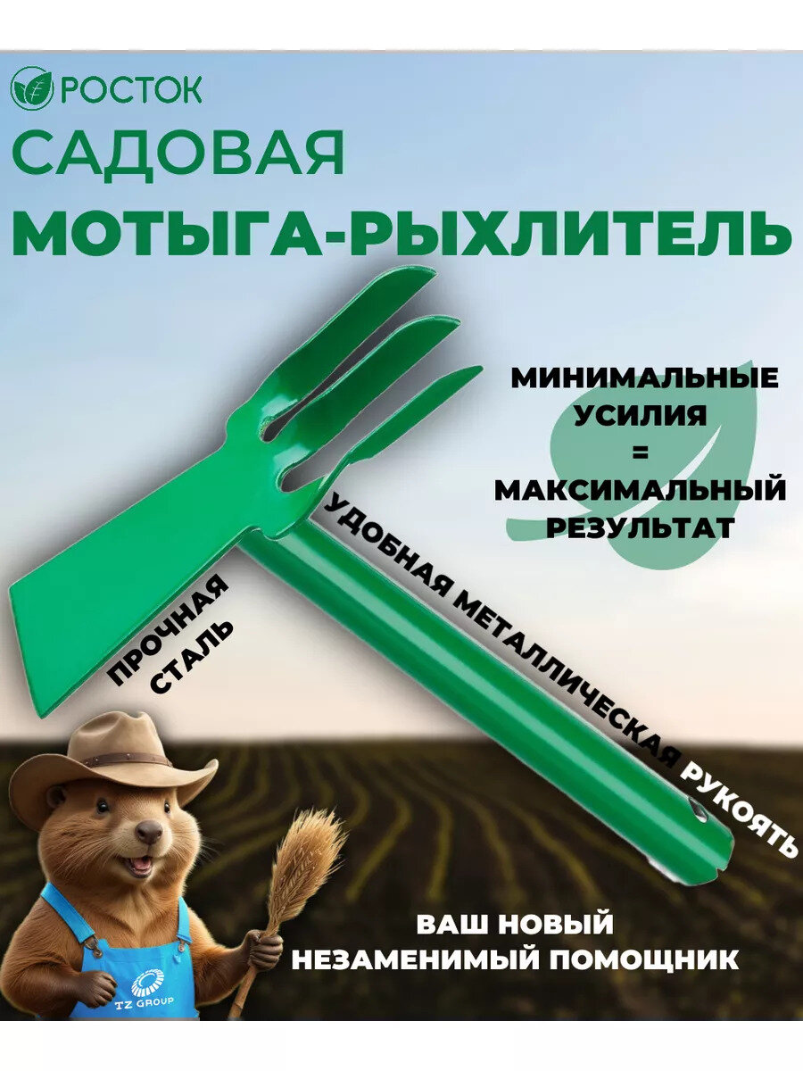 - Мотыга-рыхлитель, лопатка+3 зуба, металлическая ручка, прямая (Росток) обзор 421424