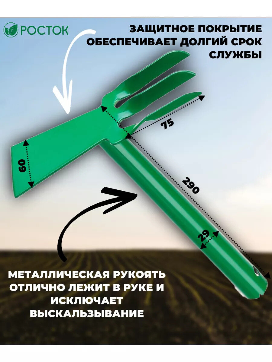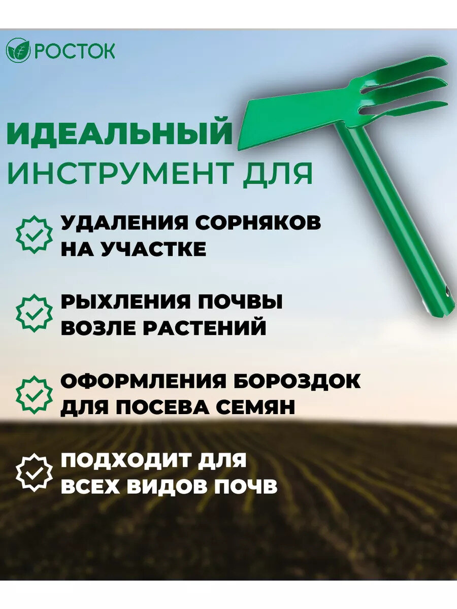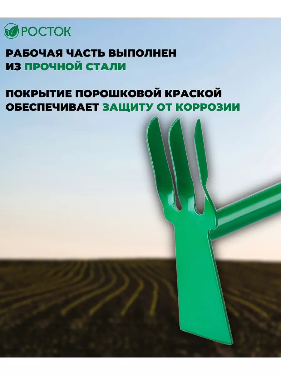 Мотыга-рыхлитель, лопатка+3 зуба, металлическая ручка, прямая (Росток) обзор 421424