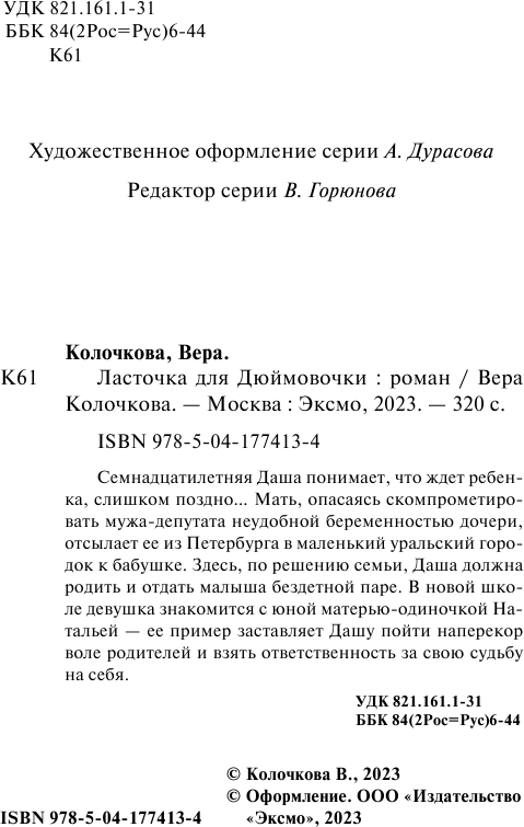 Книга: Ласточка для Дюймовочки (Колочкова Вера Александровна); ООО "Издательство "Эксмо", 2023