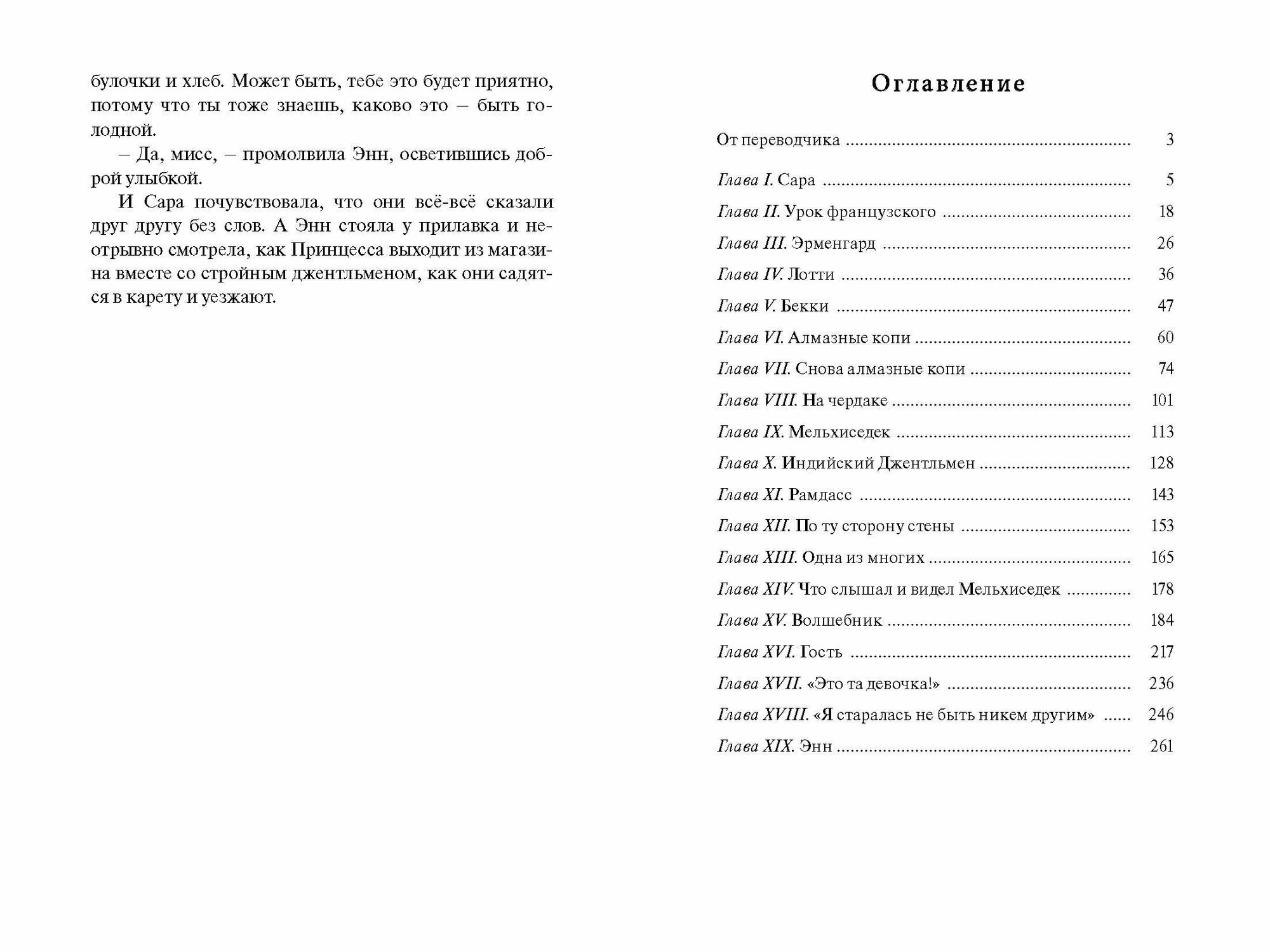 Это уже вторая книга этого автора. От произведения \"таинственный сад\" оказалась в восторге, поэтому сразу же заказала эту. Мне почти 20 лет,но я читала её с упоением и улыбкой на лице. Чистая, наивная, поучительная книга о девочке,которая никогда не теряла желания мечтать и придумывать что-то сказочное, имея большое наследство,а позднее не имея вообще ничего, она не теряла самообладания и королевской выдержки.